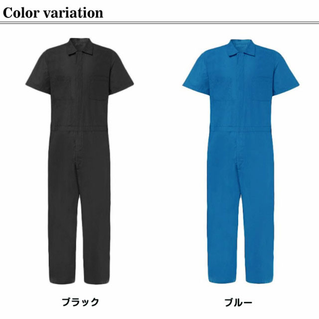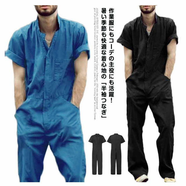 送料無料 半袖ツナギ メンズ 春夏 作業服 全2色 つなぎ 半袖 作業着 M L XL 2XL 3XL ブラック ブルー