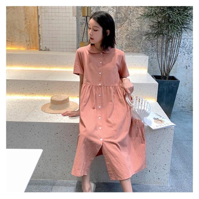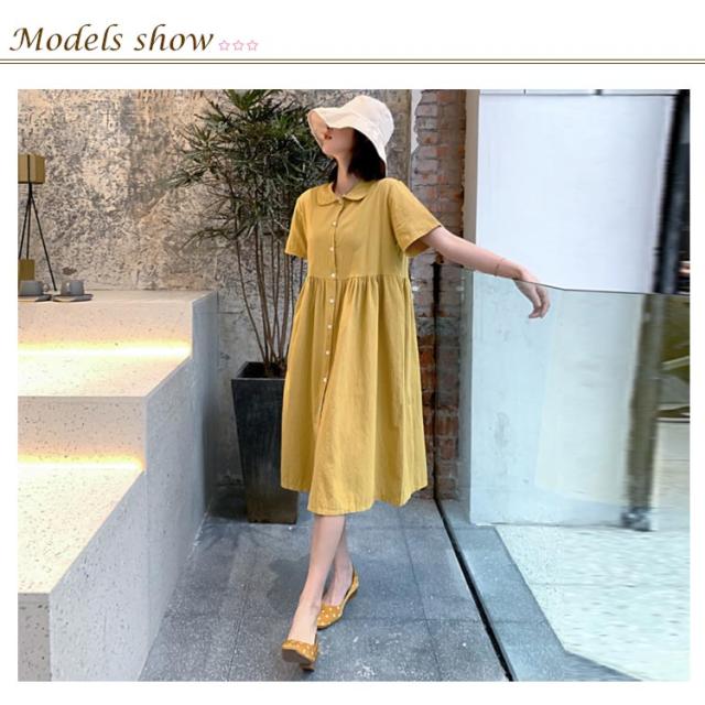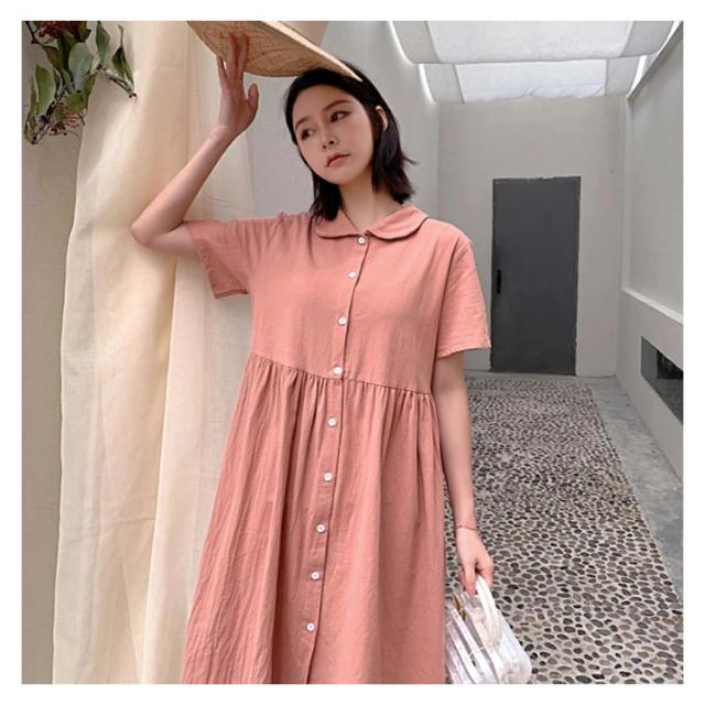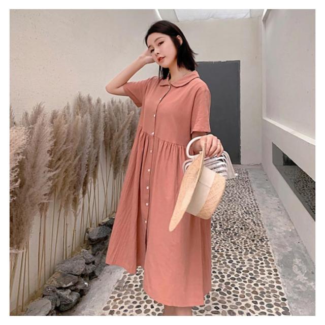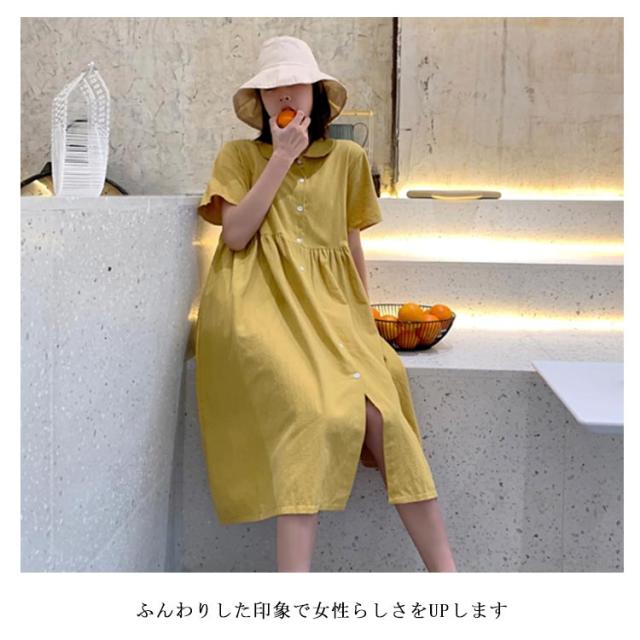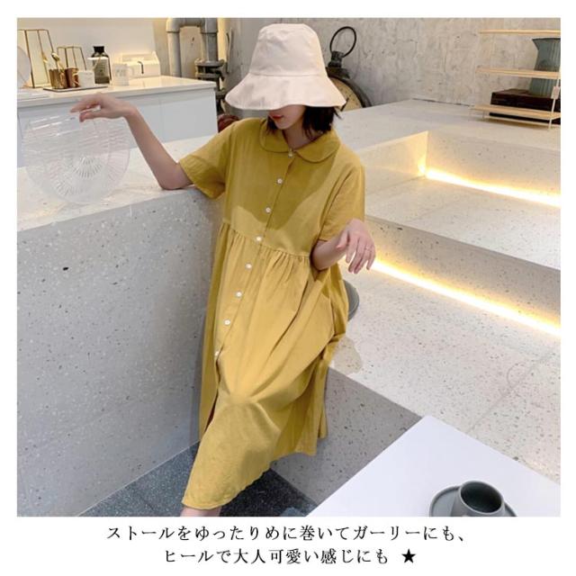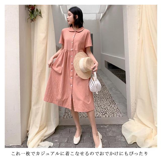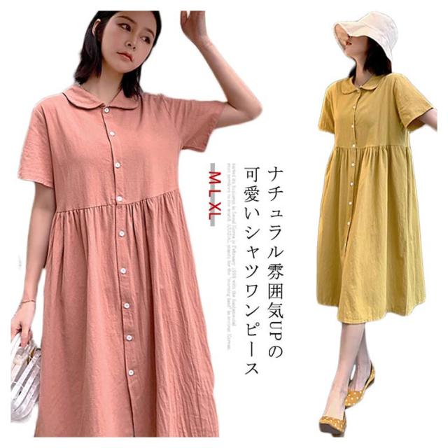 シャツワンピース リネンワンピース レディース 大きいサイズ シャツワンピース 麻生地 リネン混 半袖 ミディアムワンピース 膝下丈ワンピース 折り襟 薄手 森ガール Aライン ゆったり お洒落 カジュアル スッキリ 爽やか 夏新作