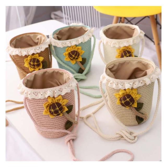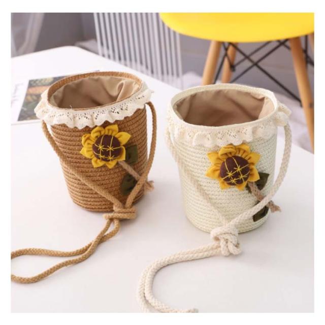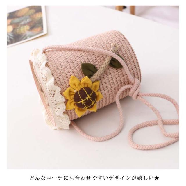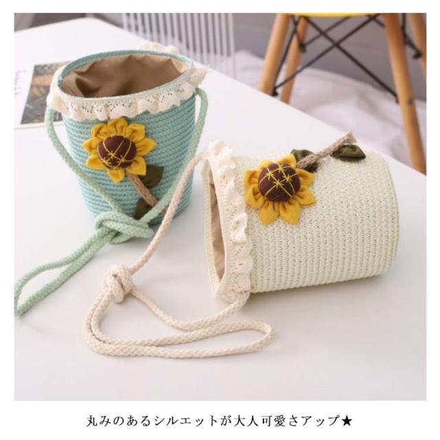 カゴバッグ ショルダーバッグ レディース 子供 キッズ 天然素材 麦わら カゴバッグ かごバッグ 向日葵柄 ひまわり ナチュラル ストローバッグ カゴポシェットバッグ 麦わら 編みバッグ 編み 肩掛け かばん カバン 鞄 小物収納 2020春新作