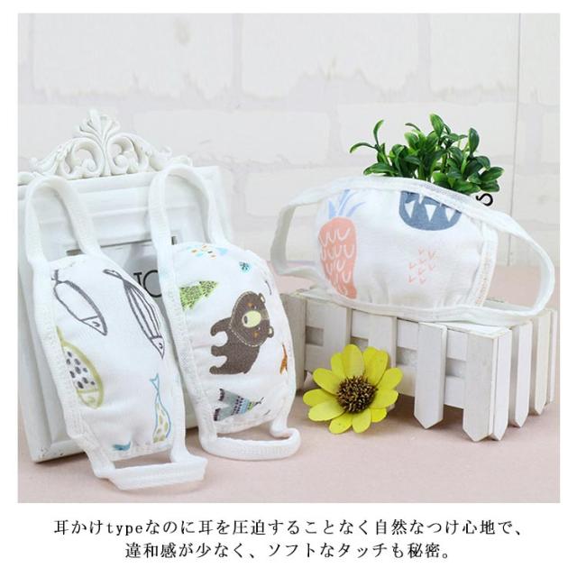 | コットン100%生地でお作りした子供マスク。 6重構造、洗濯してもよれにくく、繰り返し使えるのも嬉しい。 柔らかなコットンの布製typeだから敏感しやすいお子様でも安心できます。 耳かけtypeなのに耳を圧迫することなく自然なつけ心地で、違和感が少なく、ソフトなタッチも秘密。 風邪や花粉・ウィルス対策以外にも通園通学やデイリーユースで定番アイテム。 また、贈り物としても喜ばれています、内祝にもぜひどうぞ。 | |