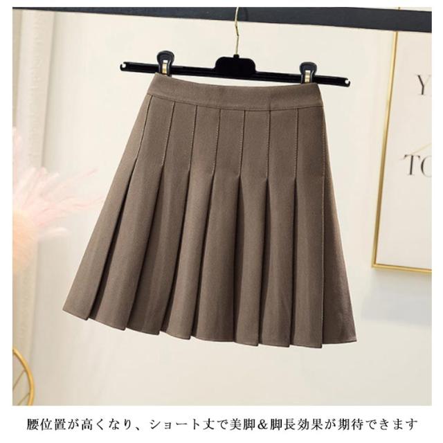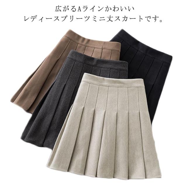 無地 冬 プリーツ インナー付き ガールズ 秋 ミニ丈 厚手 レディース ハイウエスト 美脚 ラシャ aライン ミニスカート スカート ショートスカート シンプル オフイス 通勤 通学 学生 制服 着痩せ