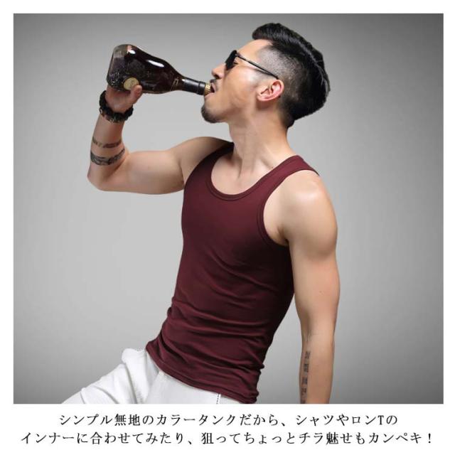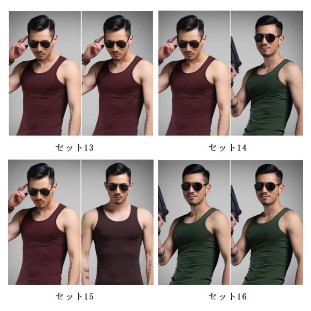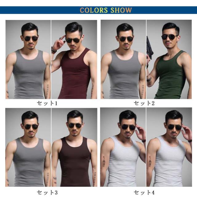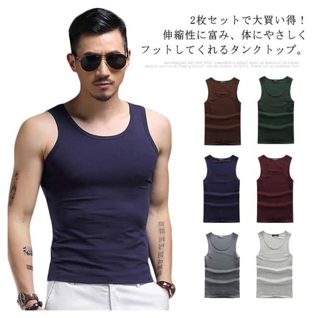 | 2枚セットで大買い得!伸縮性に富み、体にやさしくフットしてくれるタンクトップ。 肌に直接触れるタンクトップだからこそ、やわらかな着心地が大切なポイント! シンプル無地のカラータンクだから、シャツやロンTのインナーに合わせてみたり、狙ってちょっとチラ魅せもカンペキ! 1枚で着れば、男らしくワイルド美! インナーとしても大活躍のアイテムなので、色んなスタイルに万能にコーデOK。 何枚あっても使えるタンクトップは、気分やスタイルに合わせて、また洗い替えに色違いで欲しいアイテムです。 | |