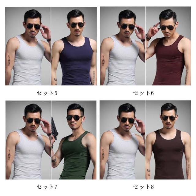 2枚セット タンクトップ メンズ Uネック インナー 男性下着 メンズ下着 Uネックタンクトップ 無地インナー メンズタンクトップ フィットネス スリム タイト シンプル 無地 夏服 夏物