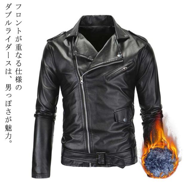 レザージャケット ライダースジャケット 裏ボア 革ジャン メンズ 皮ジャン 裏起毛 アウター バイクウエア ホワイト コーヒー ブラック 革 皮 レザー M L XL 2XL 3XL 4XL ブルゾン ギフト プレゼント 父の日