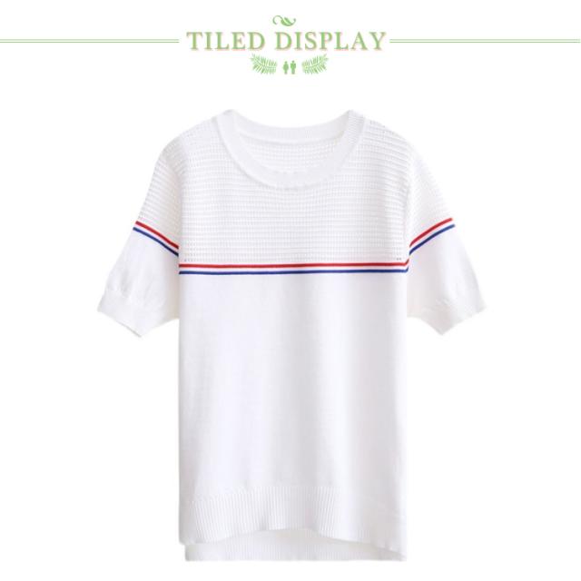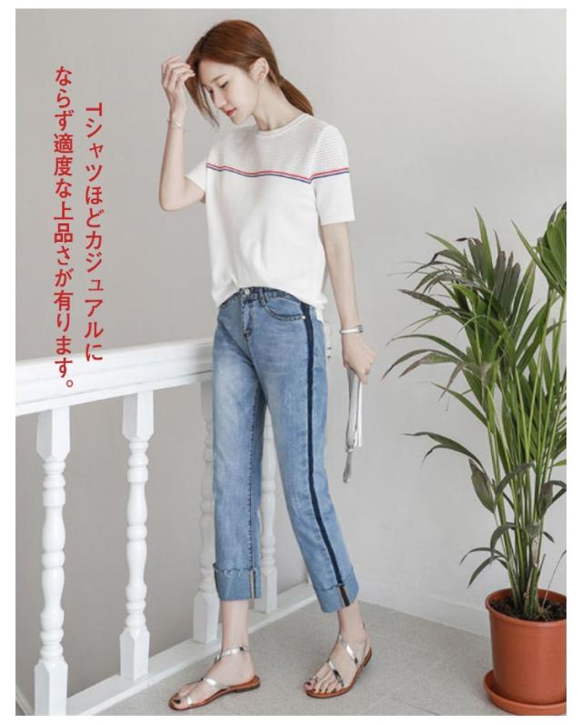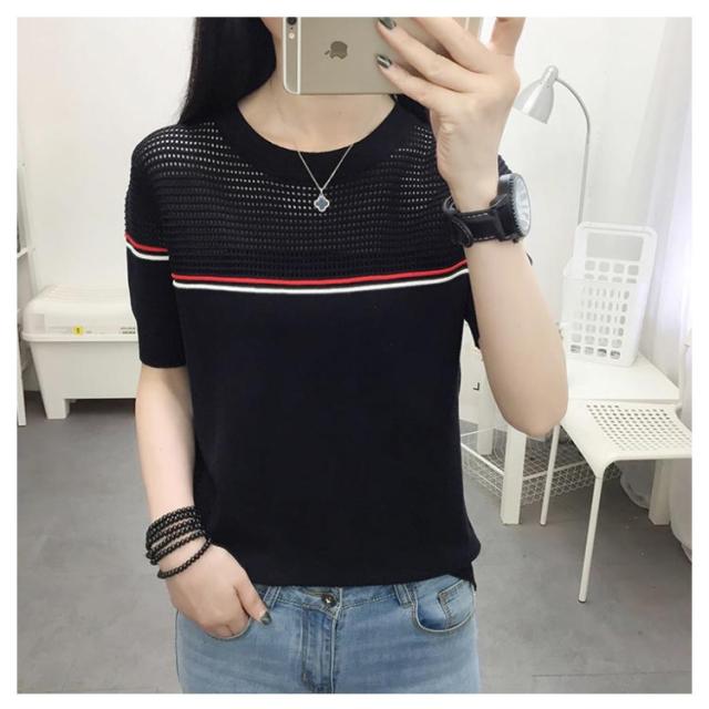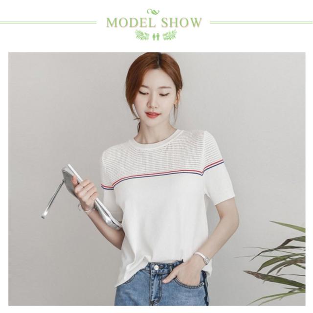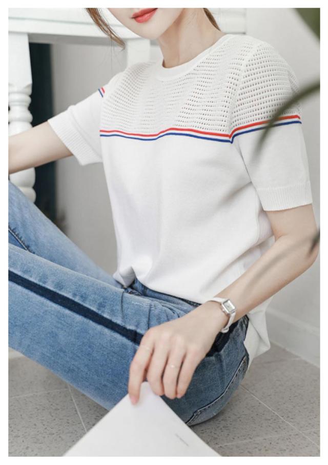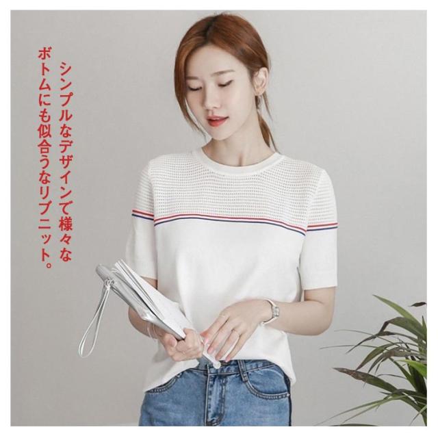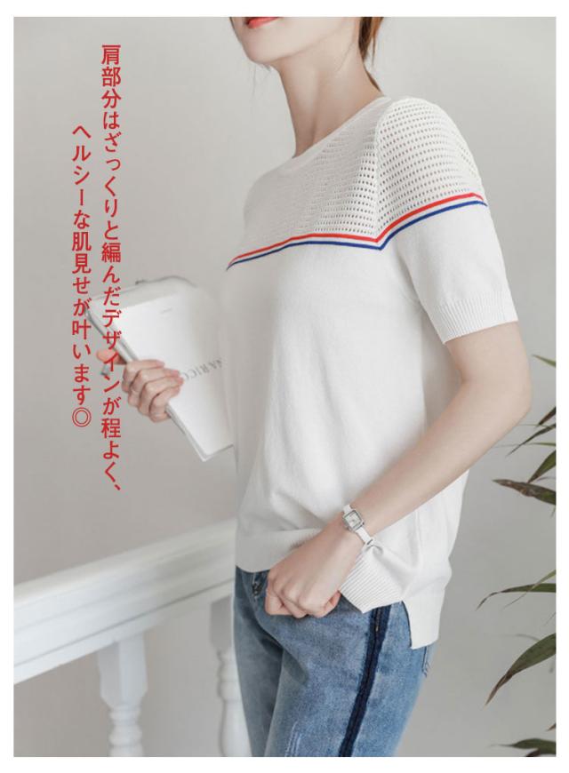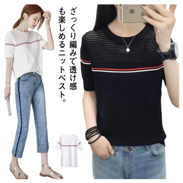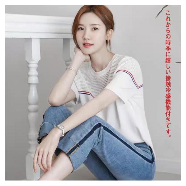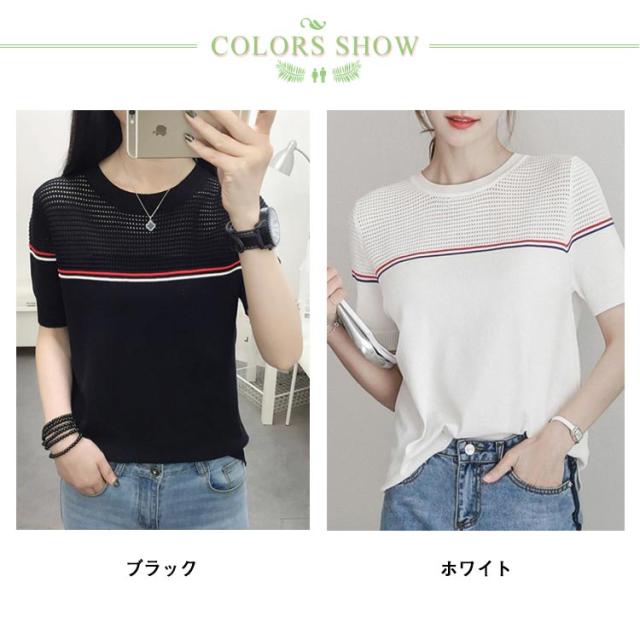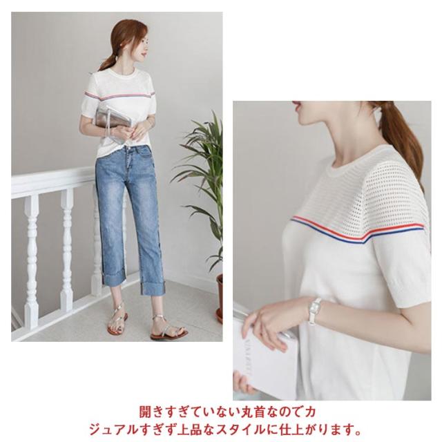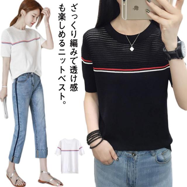 薄手 【送料無料】半袖 ひんやり レディース カットソー Uネック ライン 透かし編み 春夏 Tシャツ サマーニット 透け感 通学 通勤 40代 オフィス シンプル 20代 30代 レディース 50代 大人 冷感
