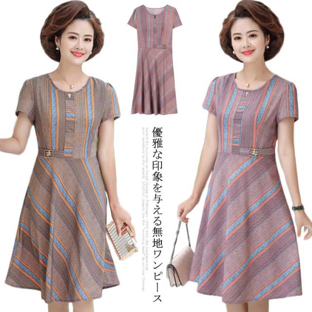 ワンピース レディース 膝丈ワンピース ミディアム丈ワンピース 半袖ワンピース 無地 エレガント 大人 キレイめ 大きいサイズ Aライン 着痩せ 通勤 普段着 体型カバー 春夏 夏新作