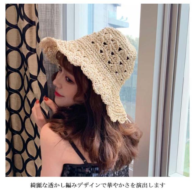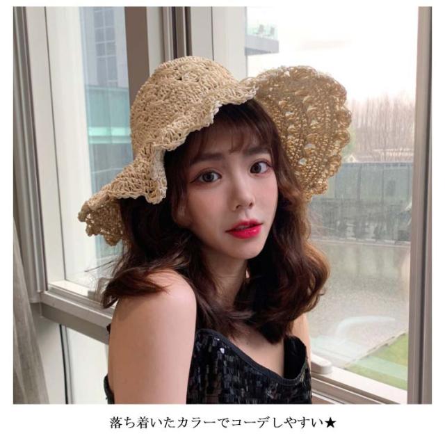 麦わら帽子 レディース つば広 ハット 帽子 つば広帽子 麦わらハット ストローハット 透かし編み 小顔効果 お洒落 大人可愛い 旅行 夏休み カジュアル 海辺 夏物 夏新作