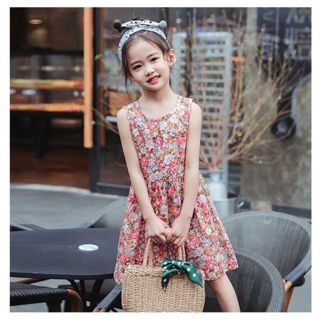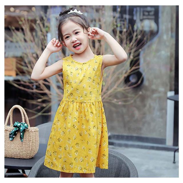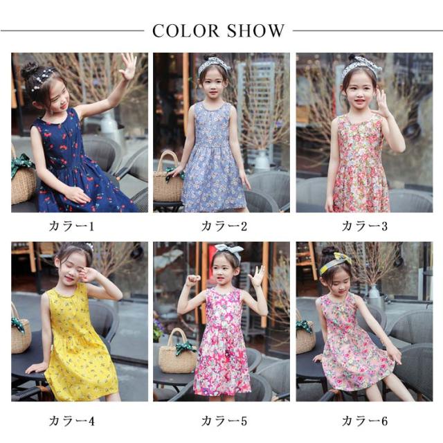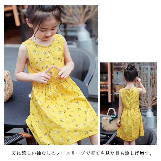 子供ワンピース フレアワンピース Aラインワンピース クルーネック ノースリーブ ガールズ 膝丈 ノースリーブ 女の子 チュニック トップス キッズ ジュニア 夏春 可愛い 新作