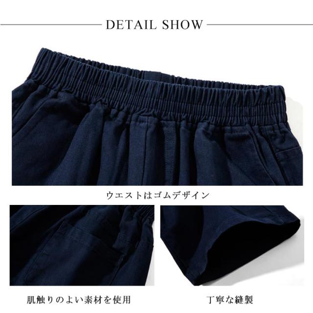| 夏に快適なショートパンツが新登場です。 コットン生地で肌触りが柔らかくて通気性がよいので着心地抜群です。 側面がポケットがあるため、ハンカチなどの部品のが保管するのももとても便利です。 スポーツシーンにも大活躍してくれる機能性抜群なパンツです。 | |