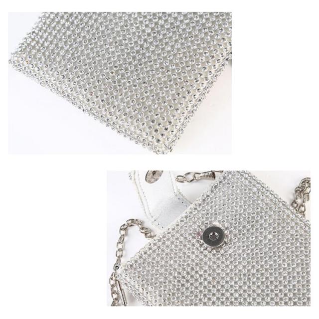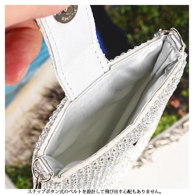 | キラキラ輝くミニスマホポーチ バッグの中で迷子になるスマホを入れて、お散歩や旅行・イベントなどでも活躍できる便利なアイテムです。 スナップボタン式のベルトを設計して飛び出す心配もありません。 贅沢なビジュー付き、動くとキラキラと輝きます。 シンプルな薄いフォルムなので、身に着けるとからだに添うようにフィットし、薄着の季節でも安心のポケット代わりに使えます。 | |
