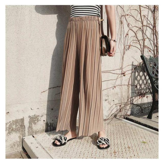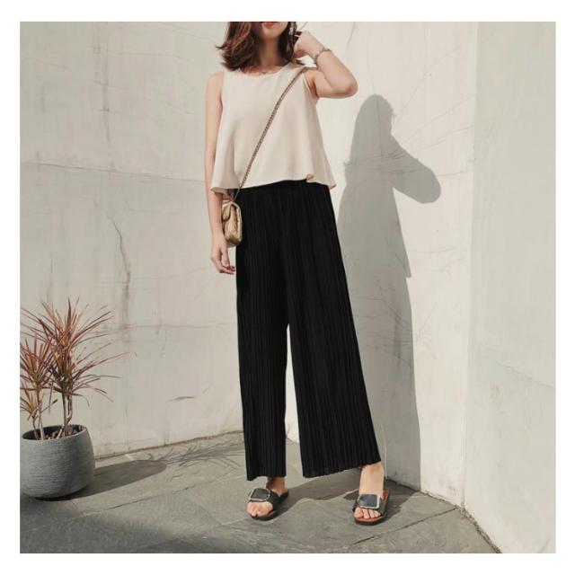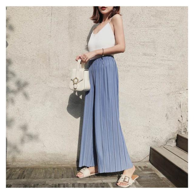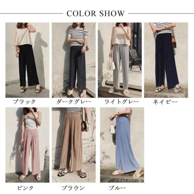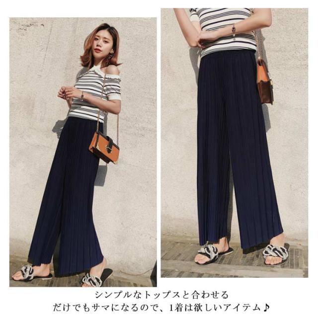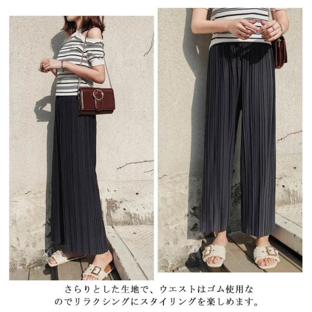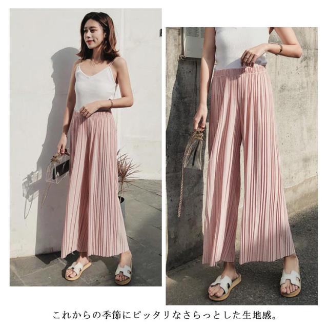 ワイドパンツ パンツ レディース ロング丈 プリーツ ボトムス ガウチョ シフォン ウエストゴム ハイウエスト きれいめ カジュアル ゆったり 春夏 お洒落 夏物