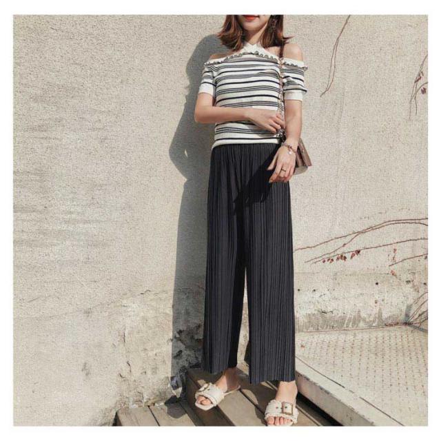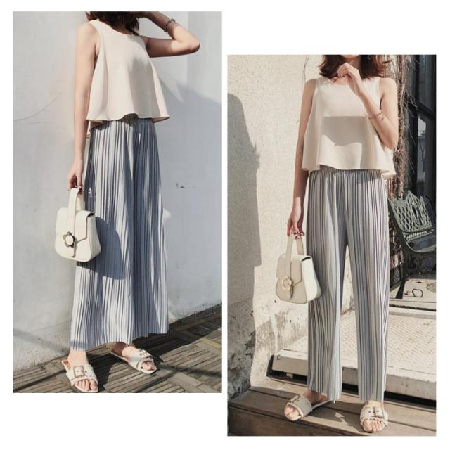| 今年トレンドのこなれ感あふれるプリーツパンツが登場! これからの季節にピッタリなさらっとした生地感。 動くたびに揺れる繊細なプリーツデザインが大人ムードを演出してくれる一枚。 さらりとした生地で、ウエストはゴム使用なのでリラクシングにスタイリングを楽しめます。 シンプルなトップスと合わせるだけでもサマになるので、1着は欲しいアイテム♪ | |