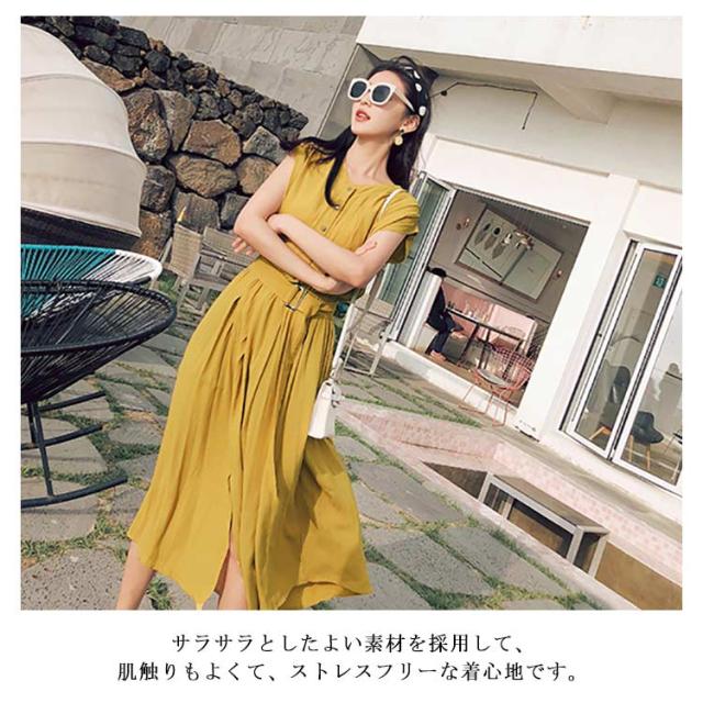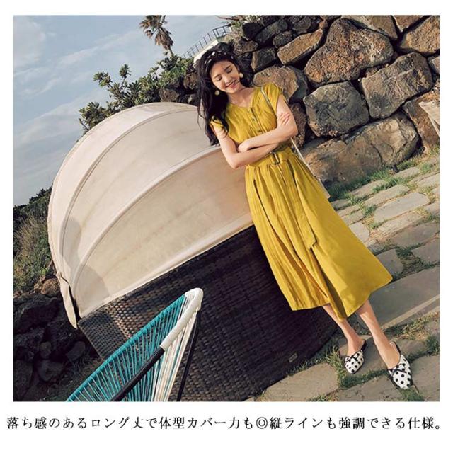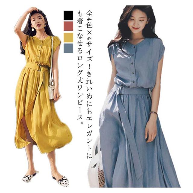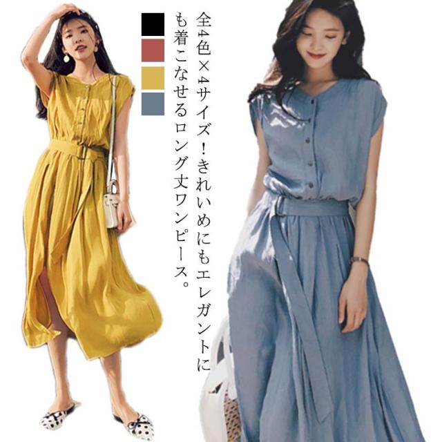 全4色×4サイズ!ロングシャツワンピース ウエストベルト付き 夏ワンピース ワンピース 夏 シャツワンピース 半袖 ロング丈 膝下丈 シンプル 無地 ナチュラル 可愛い 春夏