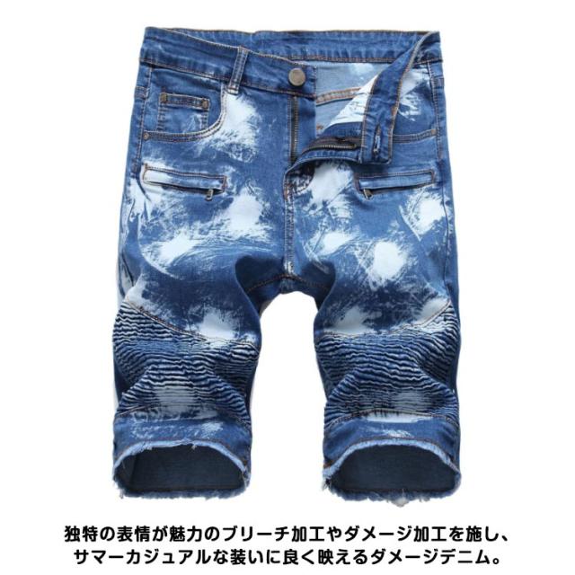 デニムパンツ メンズ デニムショートパンツ 膝上 短め スリム デニムショーツ ダメージ加工 デニム ショートパンツ 半ズボン 五分丈 ストリート 短パン ワークパンツ メンズボトムス ズボン 大きいサイズ