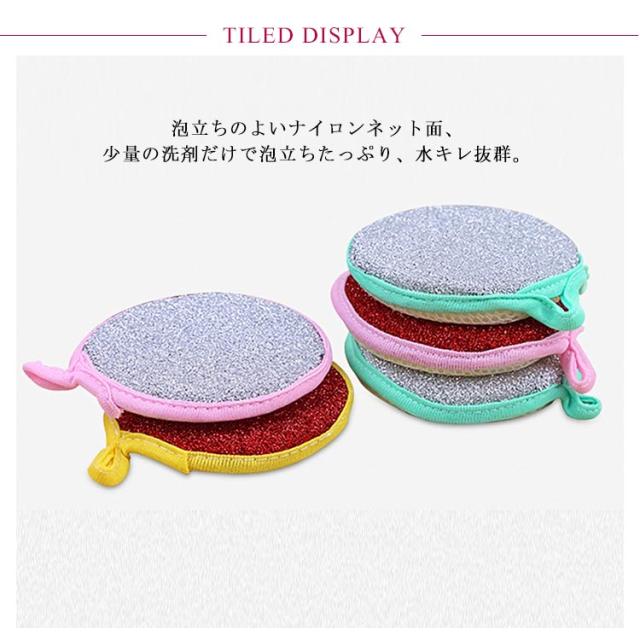 | 表裏違う素材で使い分けできる画期的な食器洗いスポンジ。 泡立ちのよいナイロンネット面、少量の洗剤だけで泡立ちたっぷり、水キレ抜群。 硬めのラメネットは茶しぶや煮こぼれなど落ちにくい汚れをサッと落としながら、食器やお皿、鍋、フライトパン、ミンクなど傷つくことない安心。 食器洗いの他、ガスレンジの油汚れやシンク、蛇口磨きに。 硬い面と柔らかな面が一つのスポンジにまとまるので、一度使うと手放せない。 | |