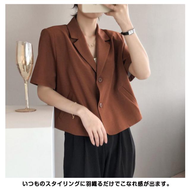 ジャケット レディース 半袖ジャケット スーツジャケット 夏 春夏 カジュアル ショート丈 テーラードジャケット 半袖 フォーマル スーツ ブレザー 大人 きれいめ カジュアル オフィス 通勤 OL 羽織 はおり