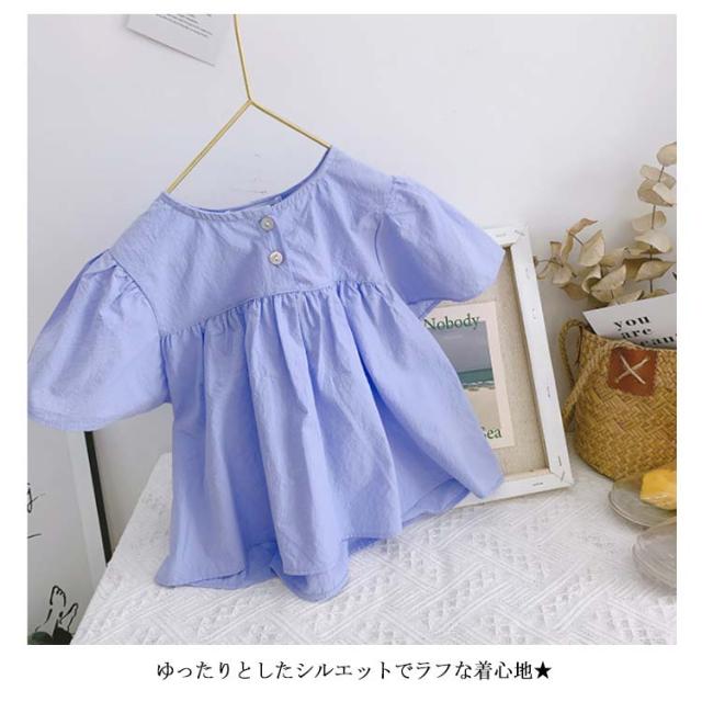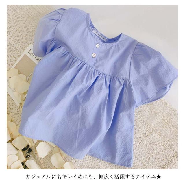 ブラウス 子供服 ブラウス シャツ フリルTシャツ フレアスリーブ 半袖 フレア シンプルシャツ 無地ブラウス ゆったり ふんわり感 可愛い 女の子 ガールズ プルオーバー トップス 夏新作
