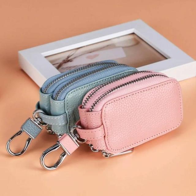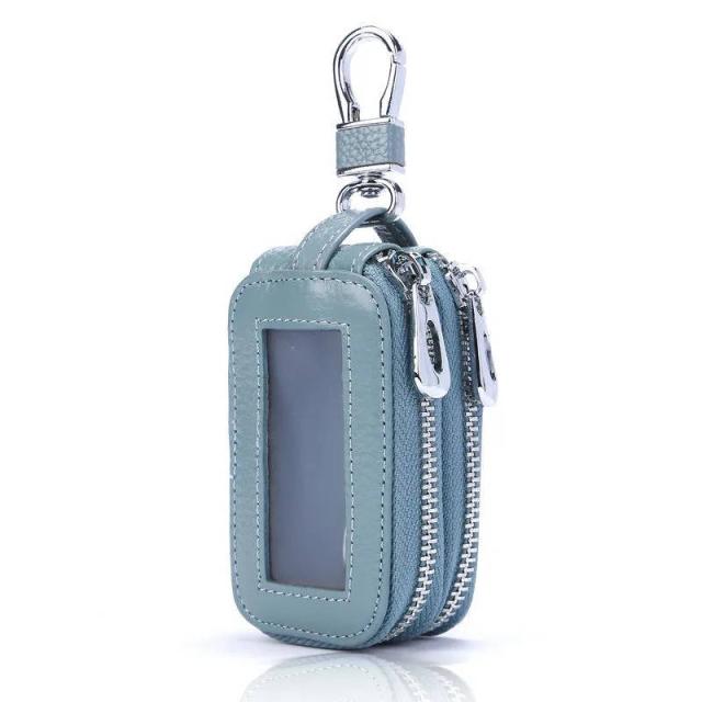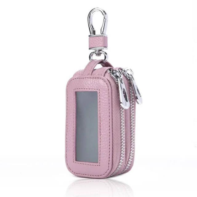 スマートキーケース 窓付き ダブルファスナー 収納 ケース カバー スマートキー 鍵ケース カーキーケース ホルダー 車キーケース レザー メンズ レディース シンプル おしゃれ カラビナ キーチェーン プレゼント 贈り物 送料無料