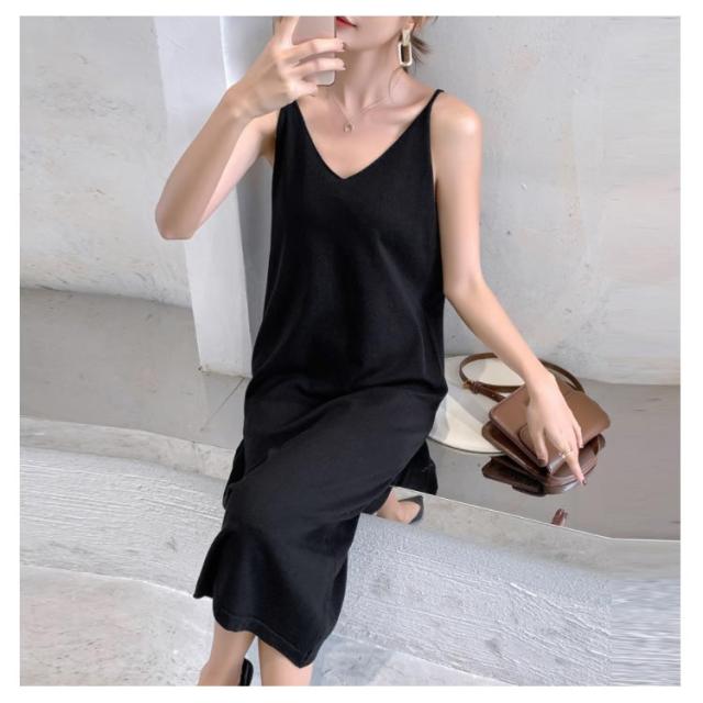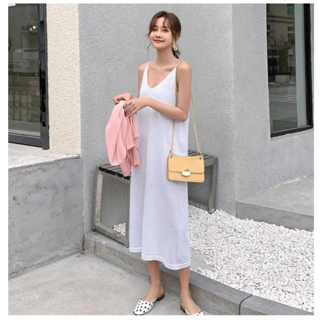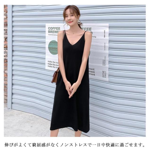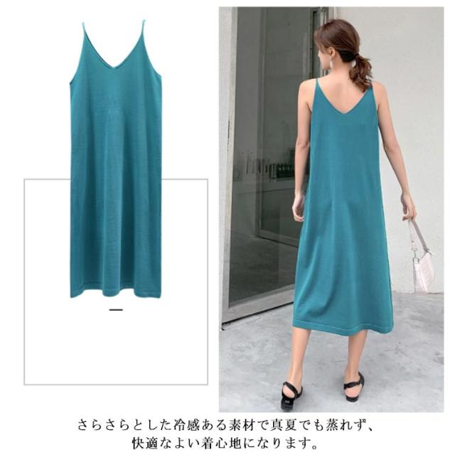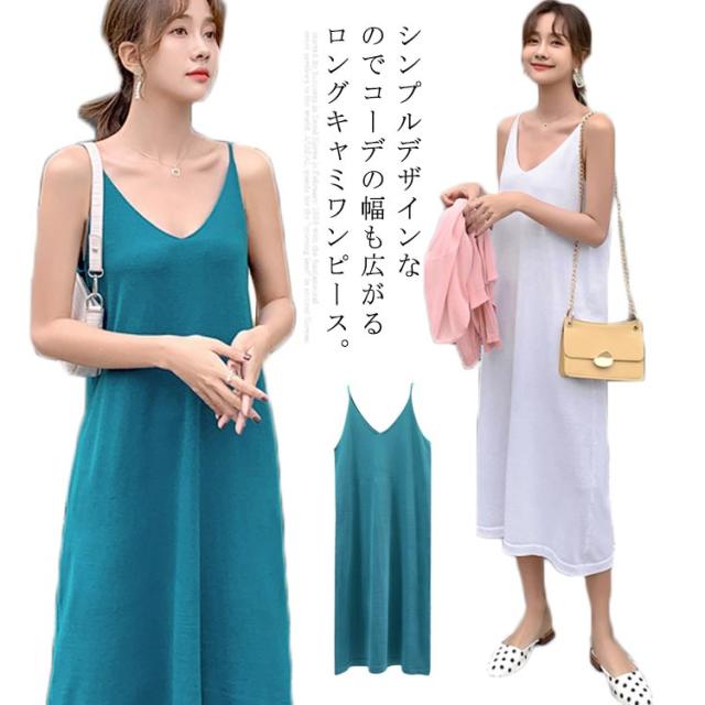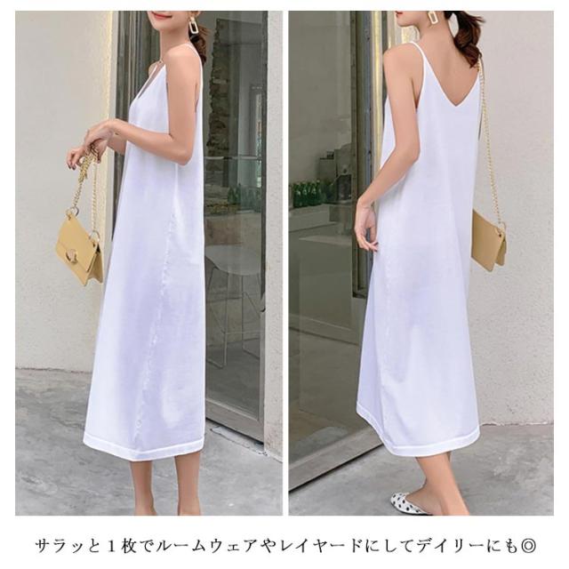 冷感タッチキャミソールワンピース ワンピース サマー レディース キャミ ワンピ キャミワンピース キャミソールワンピース Vネック ロング丈 ゆったり ルームウェア 部屋着 レイヤード シンプル 無地