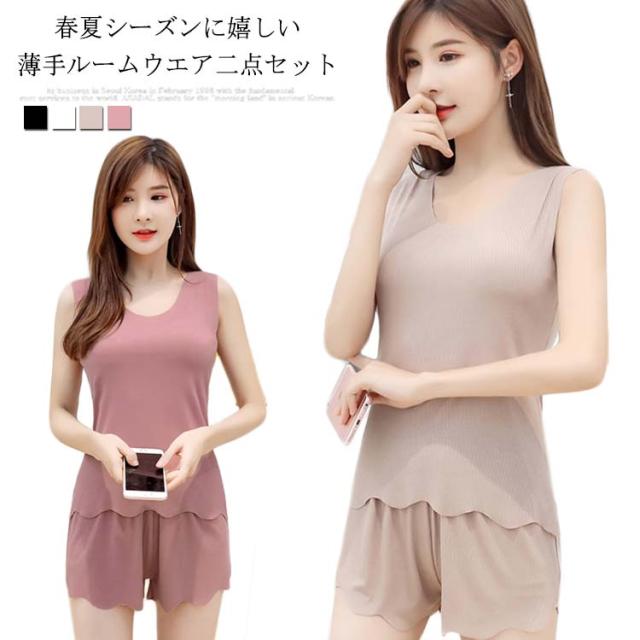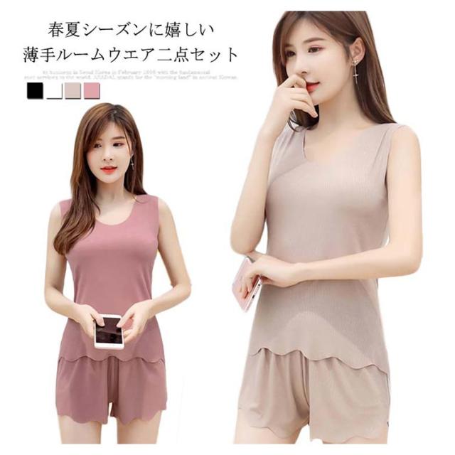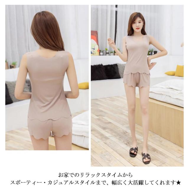 セットアップ ルームウェア 二点セット カジュアル レデイース タンクトップ ノースリーブ 薄手 インナー パジャマ ナイトウィア 上下セット 柔らかい 快適 通気性 吸湿 下着 無地 夏 肌着 シンプル 女性 肌着 新作