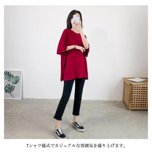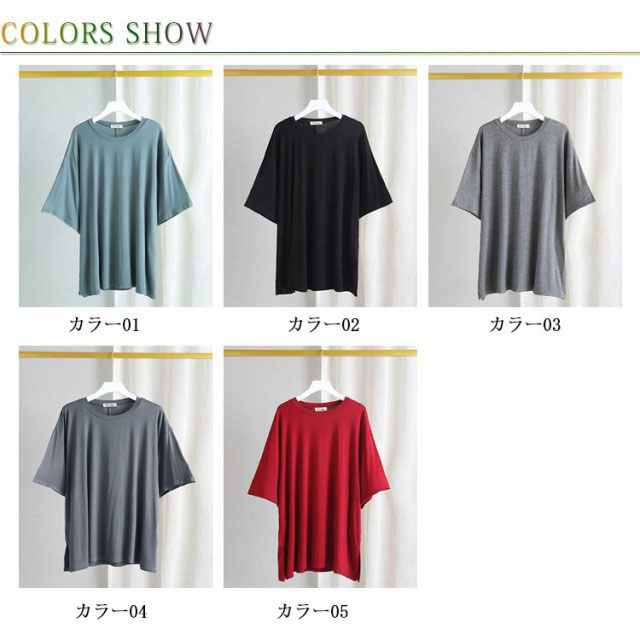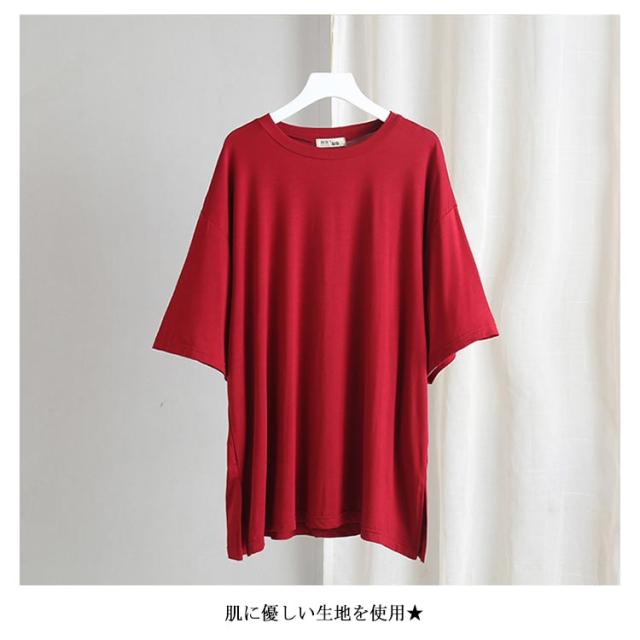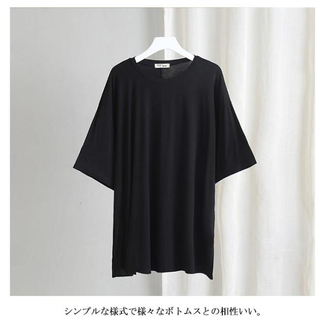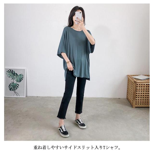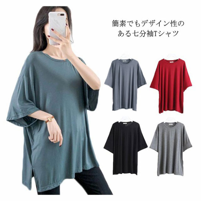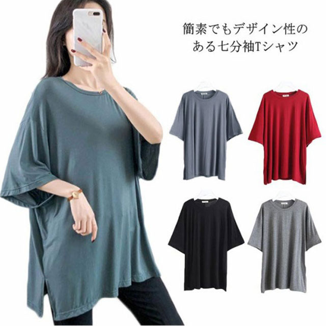 Tシャツ レデイース 7分袖 無地 ロングTシャツ Tシャツ トップス ストレッチ チュニック スリット入り ロング丈 ゆったり シンプル カジュアル リラックス 伸縮性 ストレッチ 個性的 体型カバー プルオーバー トップス 夏新作