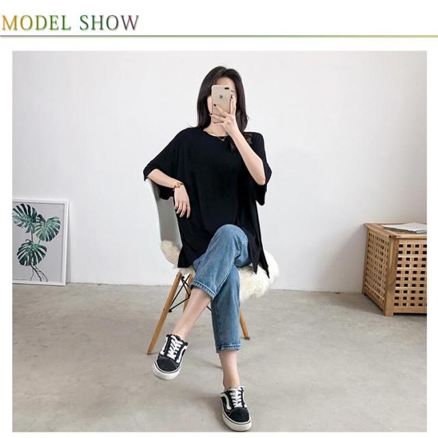 | 簡素でもデザイン性のある七分袖Tシャツ Tシャツ様式でカジュアルな雰囲気を盛り上げます。 重ね着しやすいサイドスリット入りTシャツ。 シンプルな様式で様々なボトムスとの相性いい。 | |