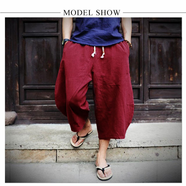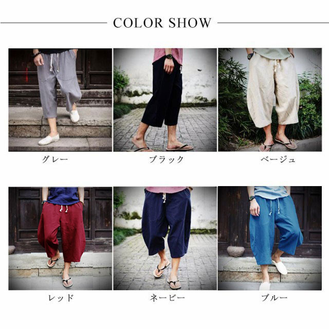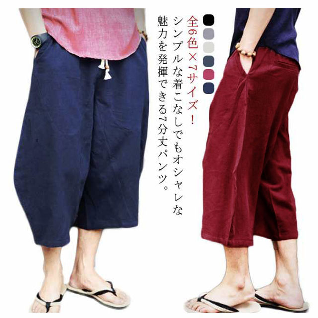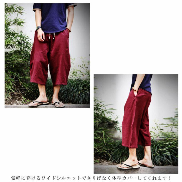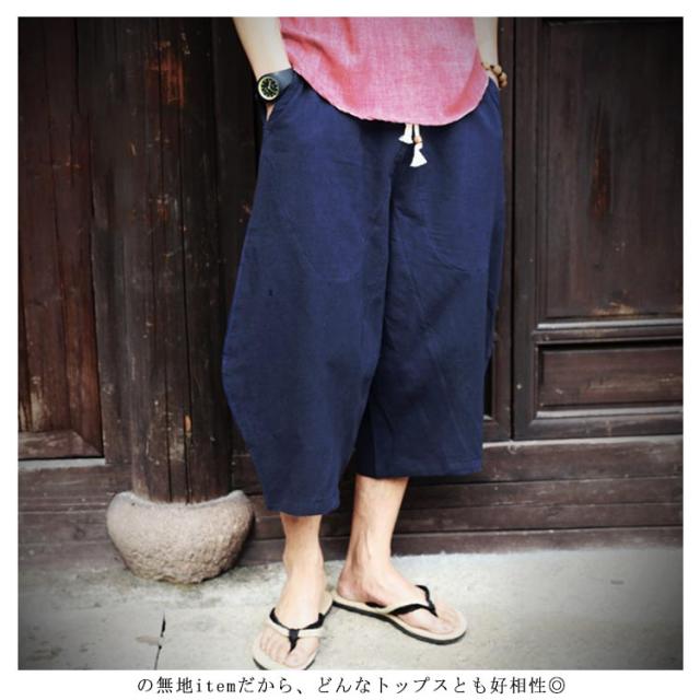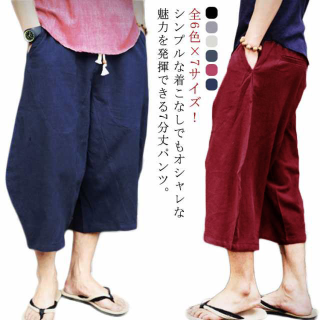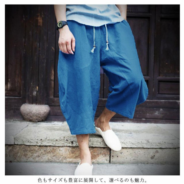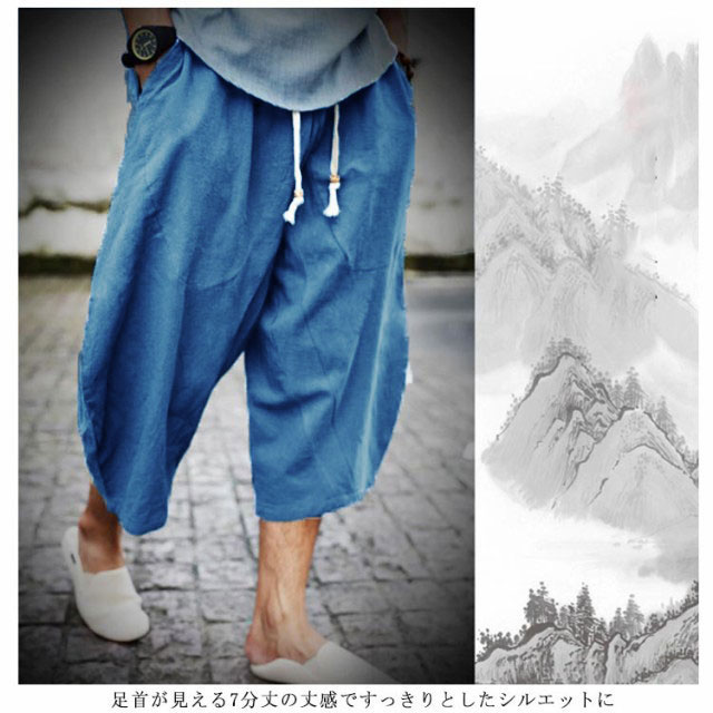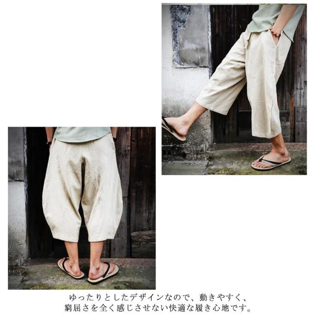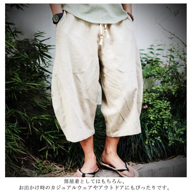 サルエルパンツ メンズ 送料無料 クロップドパンツ 七分丈パンツ 綿麻 イージーパンツ カジュアル ゆったり 七分丈 ハーフパンツ エスニック ボトムス 部屋着 麻混 コットンリネン ウエストゴム 大きサイズ ナチュラル 部屋着 リラックス 通気性抜群 夏