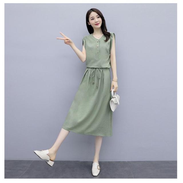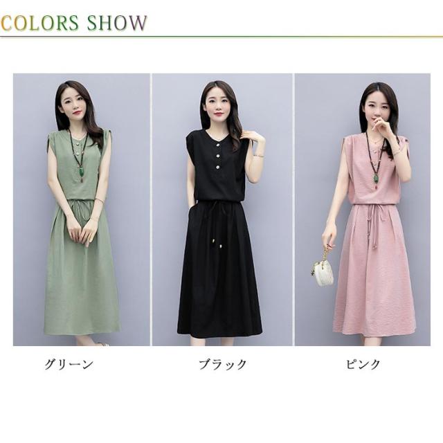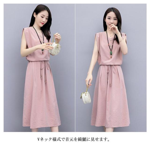 リネンワンピース リネン ワンピース レディース 綿麻 ミモレワンピース リネン混 ロング丈ワンピース 半袖ワンピース Vネック リボン 大人 かわいい 無地 カジュアル お洒落 キレイめ 夏新作