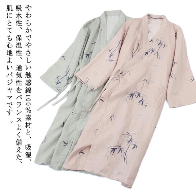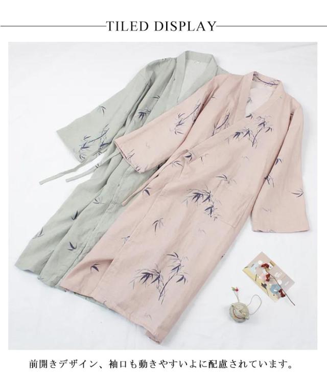 竹柄 バスローブ ロングガウン ナイトガウン 綿100 レディース メンズ パジャマ ワンピース ルームウェア 風呂 温泉 部屋着 寝間着 寝巻き 浴衣 甚平 入院用 介護用 産後 夏 夏祭り ナチュラル M L