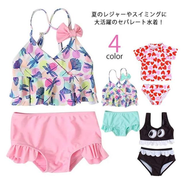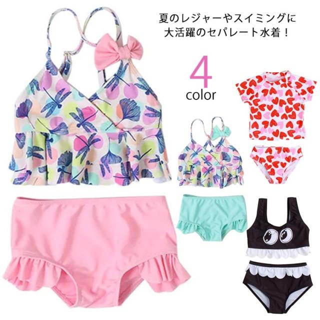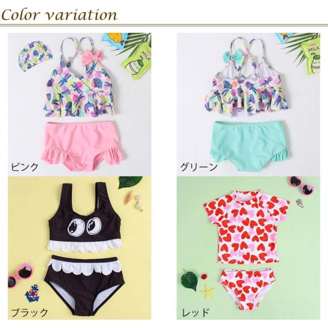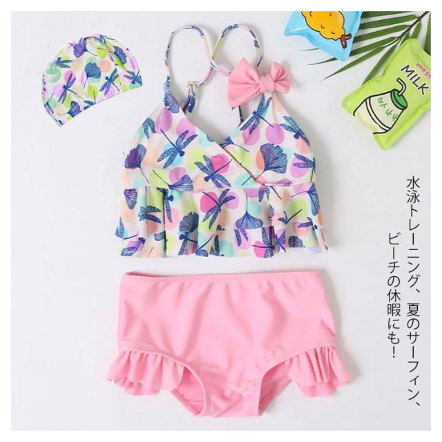 水着 セパレート 子供 ベビー キャップ付き 可愛い 2点セット スイミングウェア 赤ちゃん キッズ水着 女の子 フリル プール ビーチ 海 水遊び 小学校 幼稚園 保育園