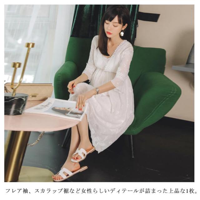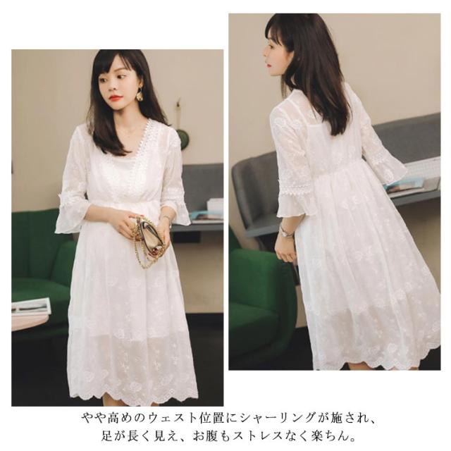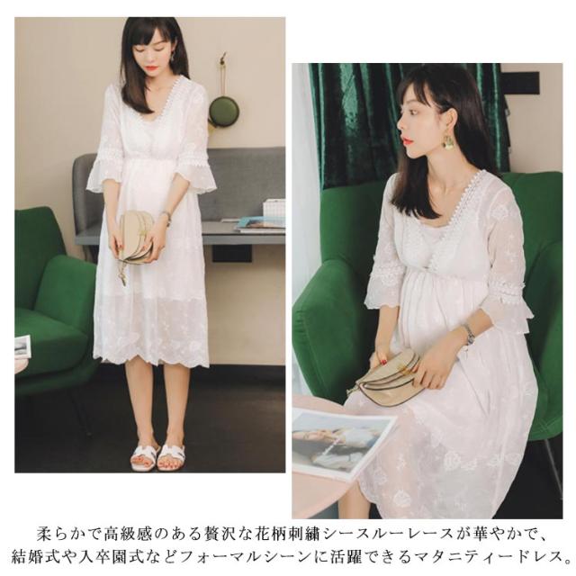マタニティ ドレス マタニティワンピース レース 送料無料 5分袖 フォーマル 入学式 入園式 卒業式 卒園式 結婚式 お宮参り 七五三 パーティードレス 春夏