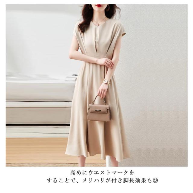 | エレガントムードで纏いたいロングワンピース。トレンドに左右されないシンプルさが魅力。 フレンチスリーブが肩のラインや二の腕のラインを綺麗に見せます。 高めにウエストマークをすることで、メリハリが付き脚長効果も◎ Vネックの顔まわりをすっきり見せてくれ、涼やかな着こなしに。 歩くたびシルエットに動きがうまれるデザインです。 シンプルかつきちんと感のあるデザインでオフィスから子供の学校行事まで幅広く着まわすことが可能です。 セレモニー(入園,卒園,入学,卒業)やお仕事にも着用できる汎用性の高いアイテムです。 | |