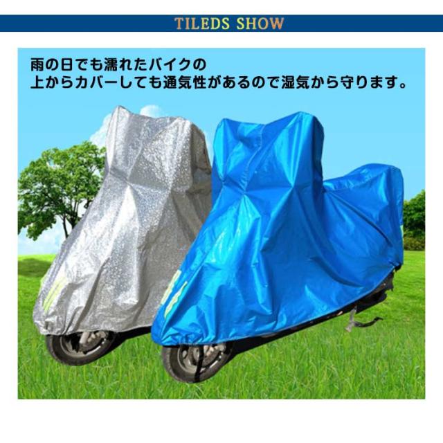 送料無料 バイクカバー 防水 大型 厚手 耐熱 バイクカバー スクーターカバー レインカバー uvカット 紫外線防止 盗難防止 防犯 錆びにくい 頑丈 丈夫 S〜2XL バイク用品 ブルー シルバー