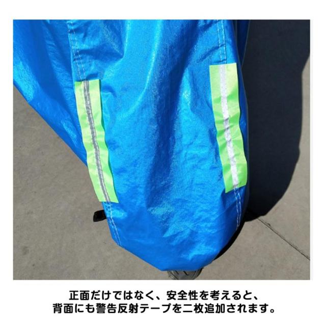 | シンプルで使いやすい大変お買い得なバイクカバー。 雨の日でも濡れたバイクの上からカバーしても通気性があるので湿気から守ります。 前輪・後輪部分にひもが入っており、しっかりカバーを固定。 正面だけではなく、安全性を考えると、背面にも警告反射テープを二枚追加されます。 小さく折り畳んで持ち歩ける専用の収納袋付きでとっても便利! S〜2XLの5サイズが用意しており、スクーターから大型バイクまで対応可能! | |
