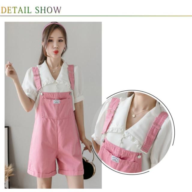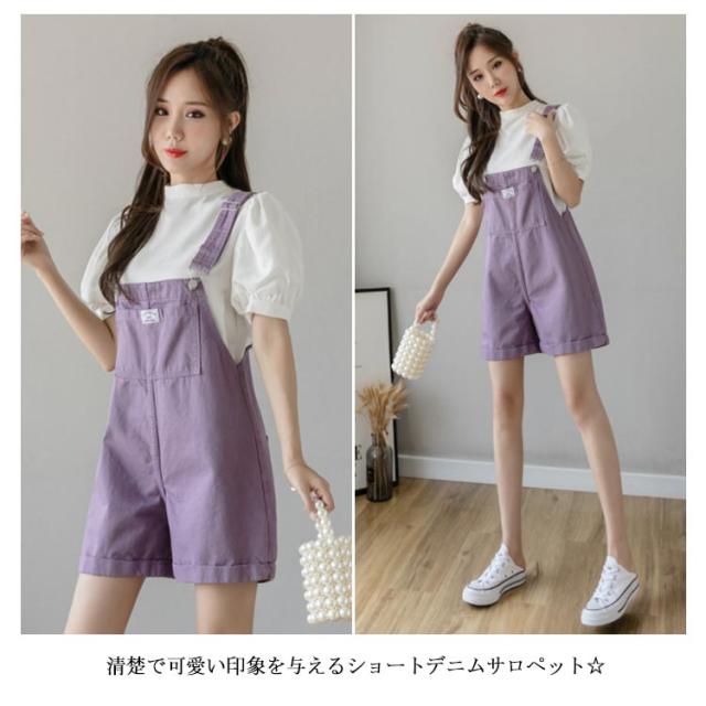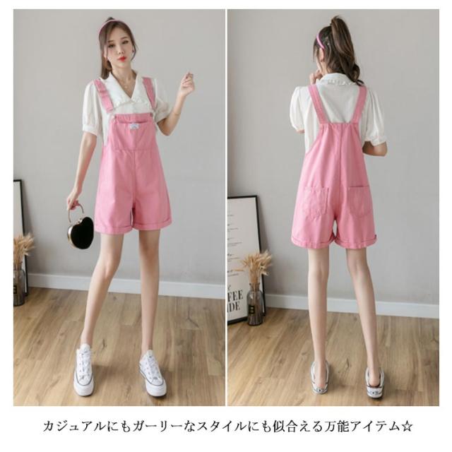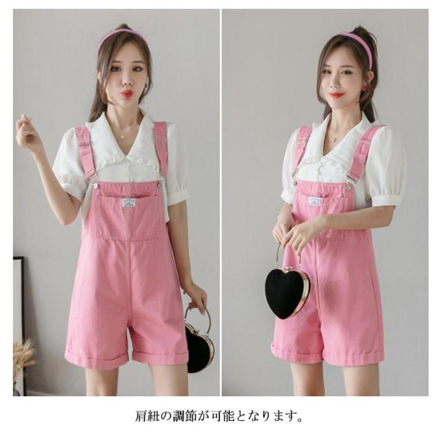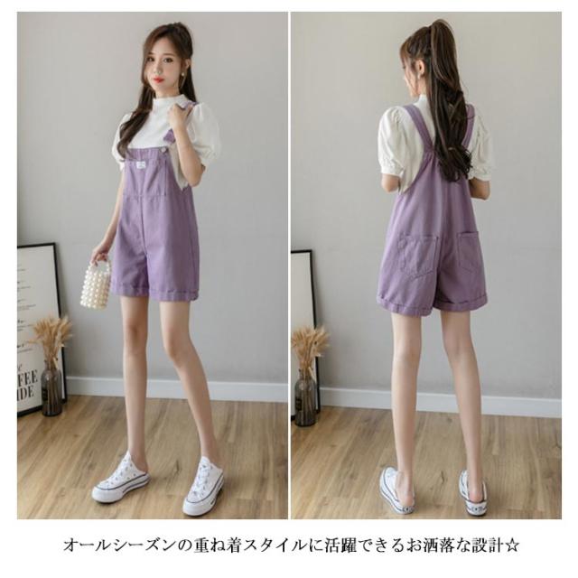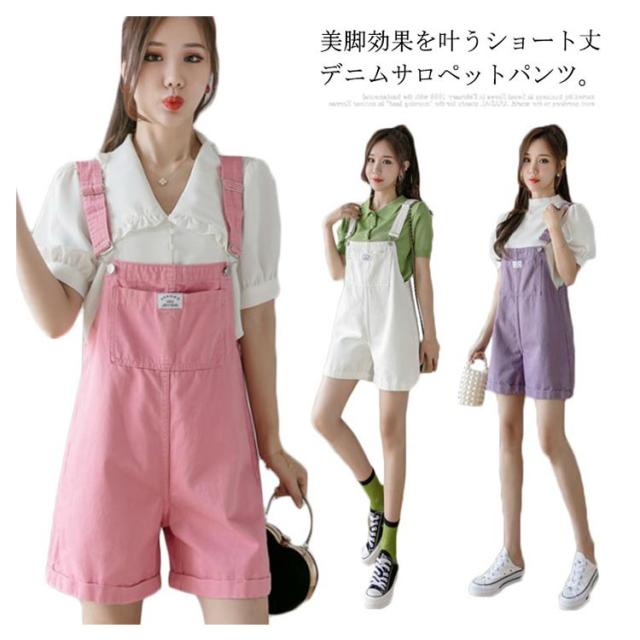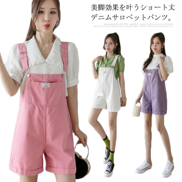 デニム レディース サロペット オールインワン ショートパンツ オーバーオール ショート丈 ワイドパンツ ポケット付き 無地 重ね着 レイヤード お洒落 カジュアル ボトムス オールシーズン 夏新作