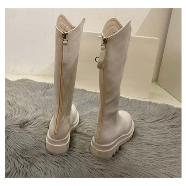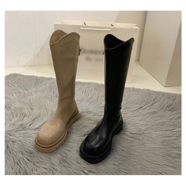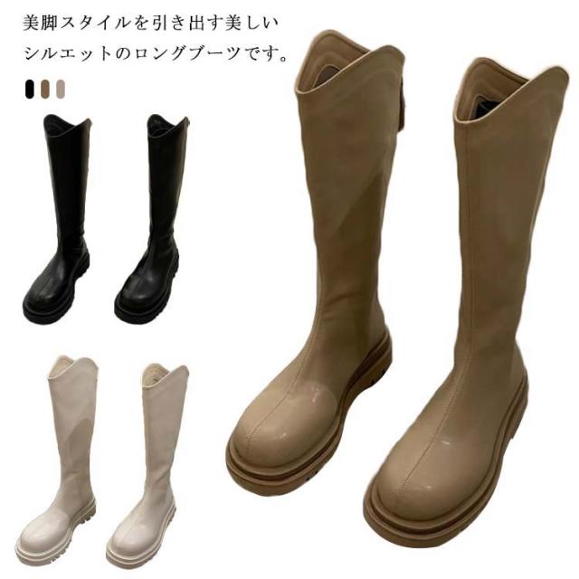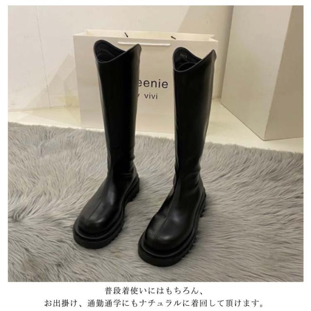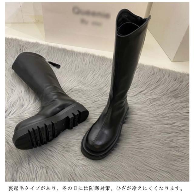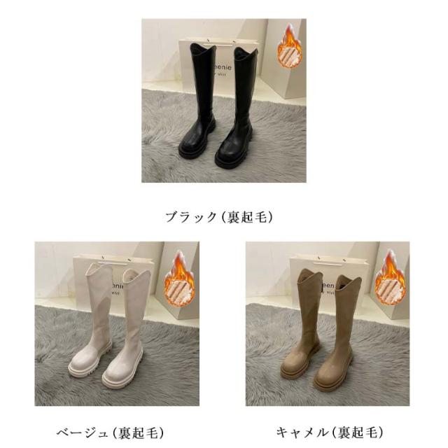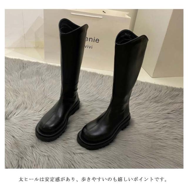 ロングブーツ ローヒール 小さいサイズ レディース ジョッキーブーツ 2タイプ シューズ 大きいサイズ 起毛なし 裏起毛 太ヒール 厚底 歩きやすい 美脚 防寒 フェイクレザー ラウンドトゥ 靴 ぺたんこ