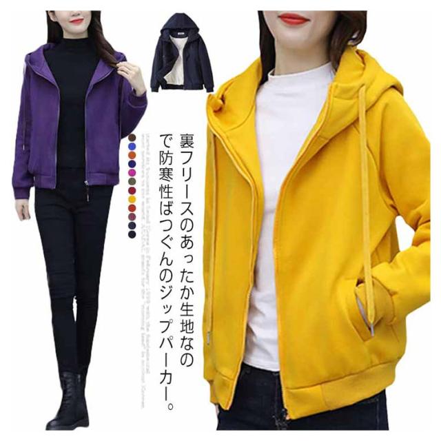 裏ボア ジップパーカー ジャケット レディース ジップアップ パーカー アウター カーディガン トップス 上着 長袖 ハイネック フリース スウェット トレーナー 部屋着 ルームウェア 裏起毛 無地 フード付き 防寒 厚手 秋 冬 おしゃれ リラックス