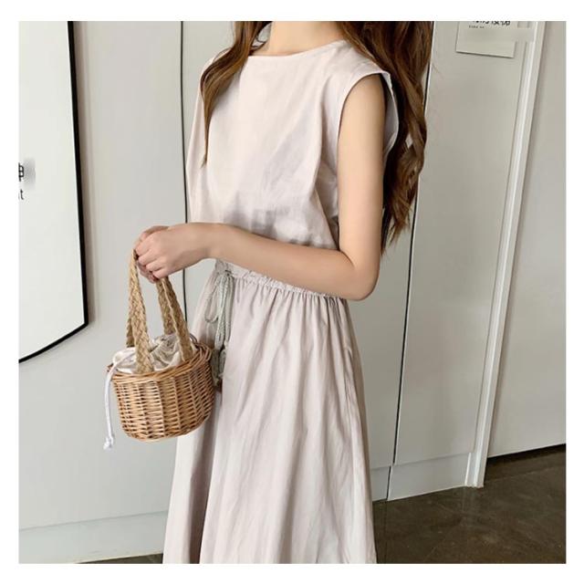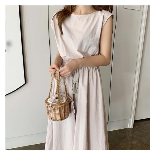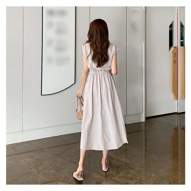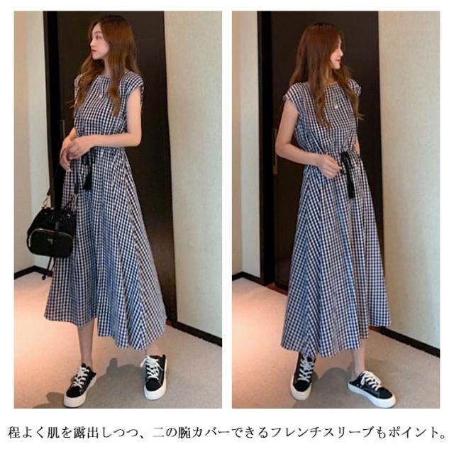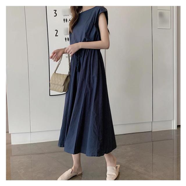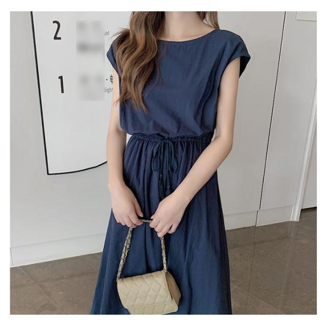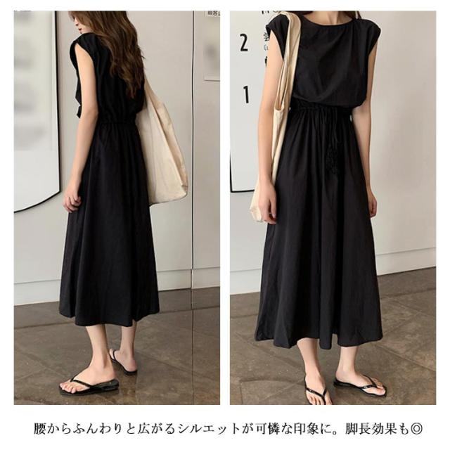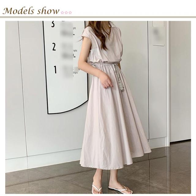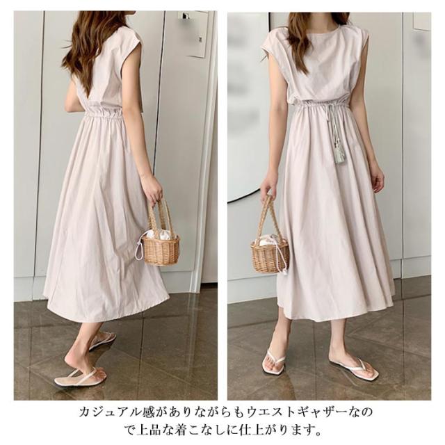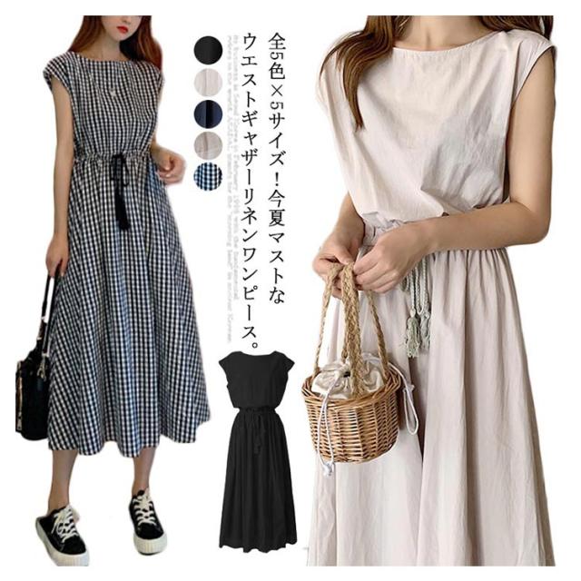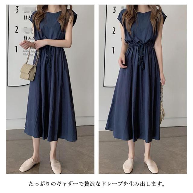 全5色×5サイズ!綿麻ワンピース ウエストギャザーワンピース フレンチスリーブ 麻混ワンピース 綿麻 ロングワンピース 半袖 ナチュラル カジュアル シンプル おしゃれ 春夏
