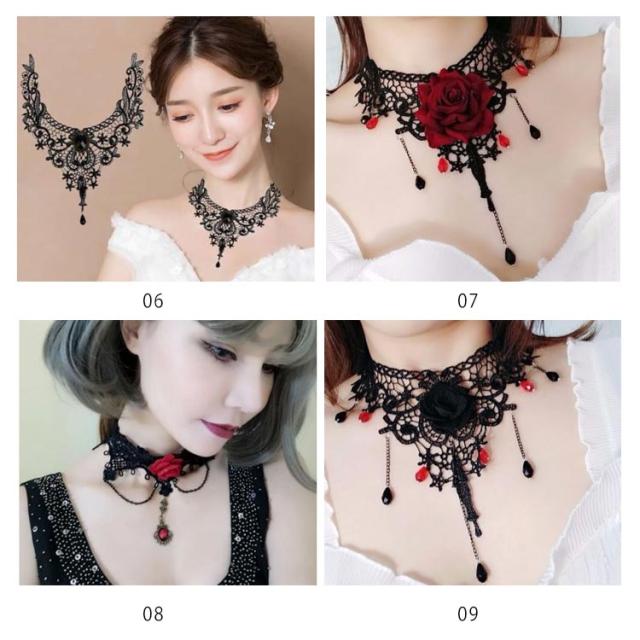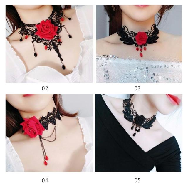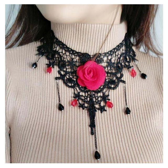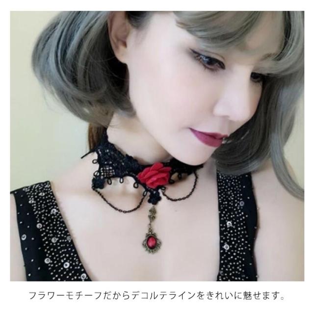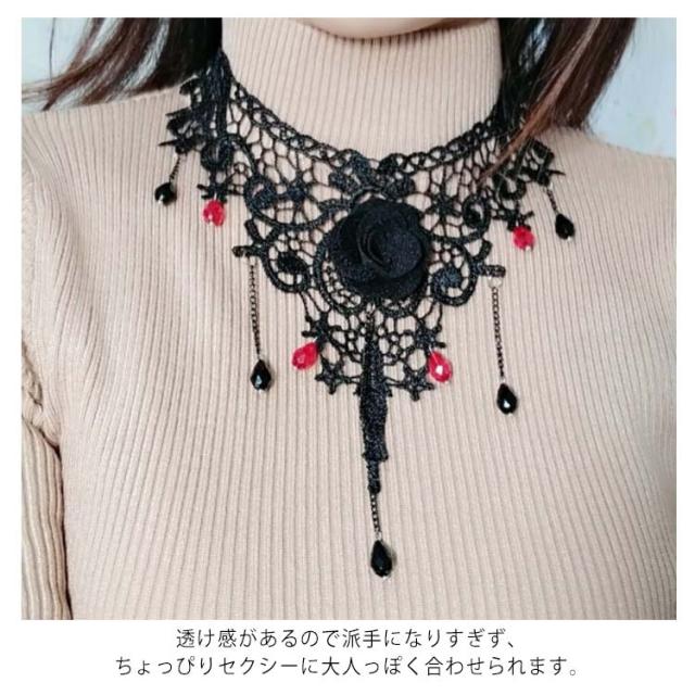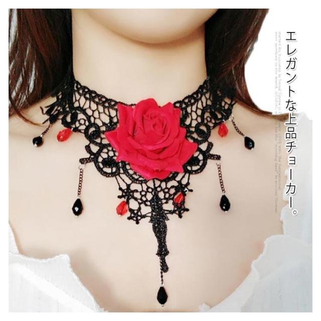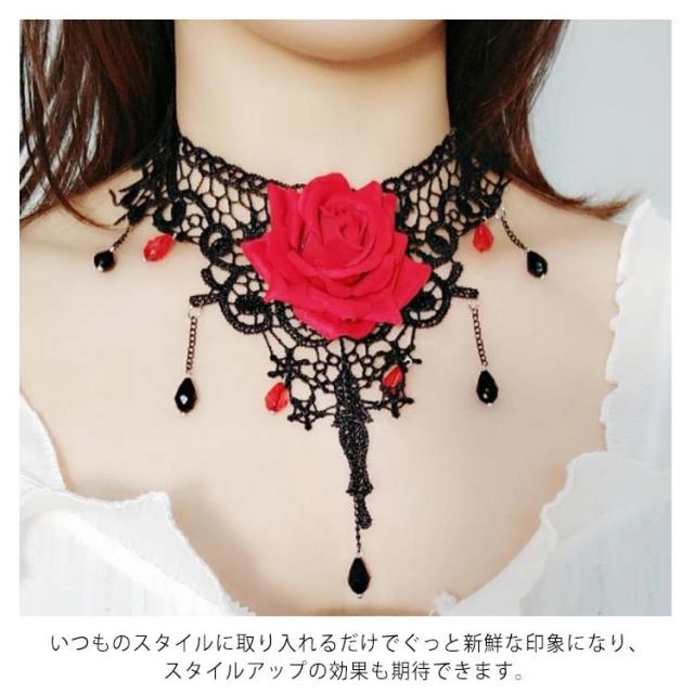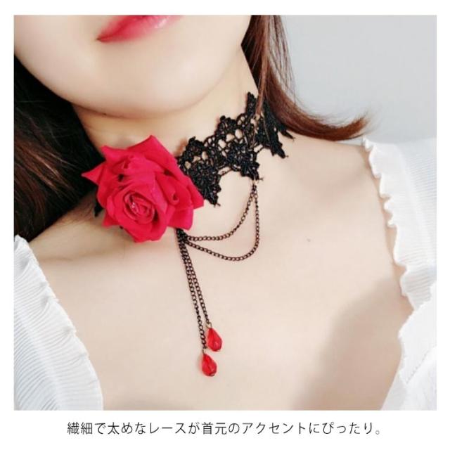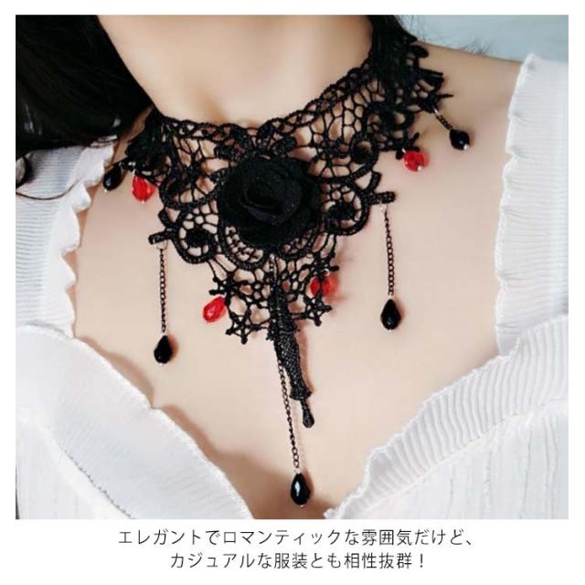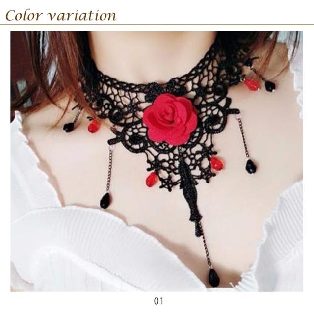 チョーカー ネックネス レースチョーカー フラワーモチーフ アクセサリー 結婚式 入学式 ペンダント おしゃれ シンプル かわいい 可愛い 黒 ブラック