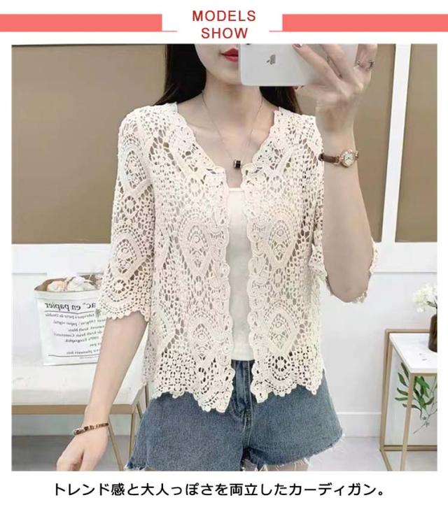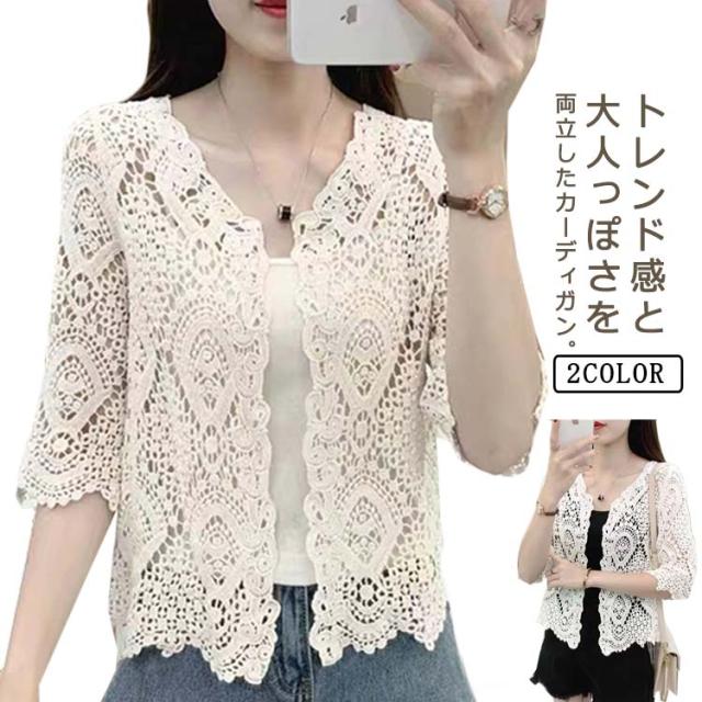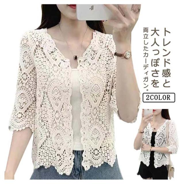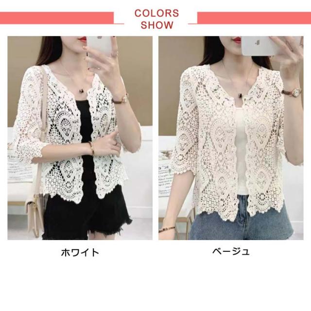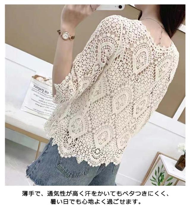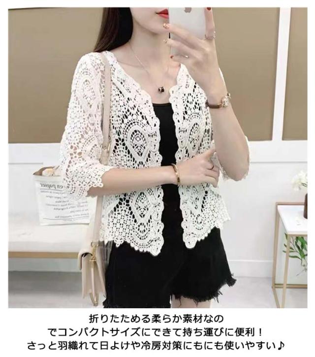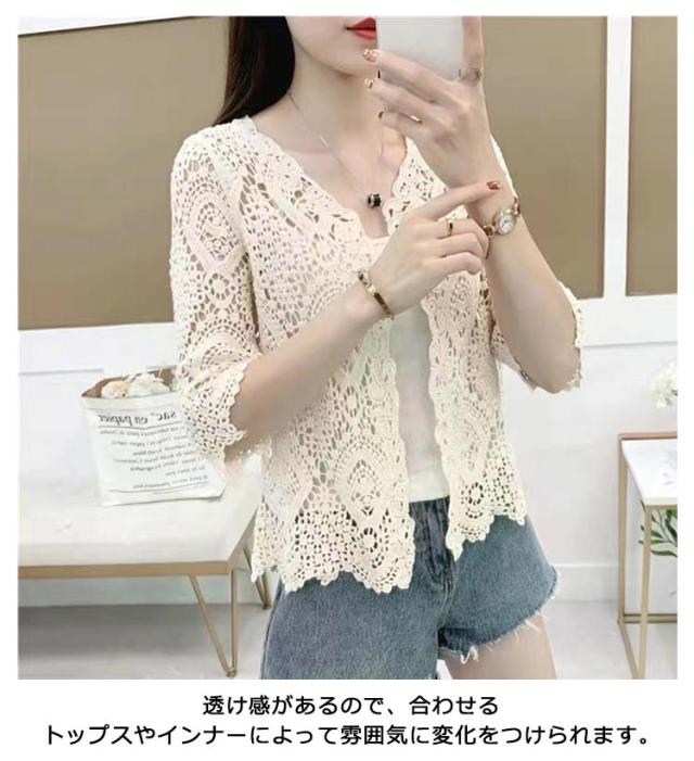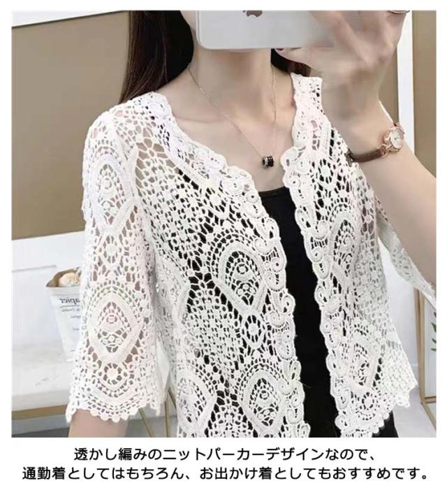 サマーカーディガン レース レディース 薄手 カーディガン 透かし編み ボレロ 羽織り 7分袖 カーディガン ショート丈 トップス 日焼け対策 冷房対策 カジュアル 大人可愛い ライトアウター 春 夏 秋 20代 30代 40代 送料無料