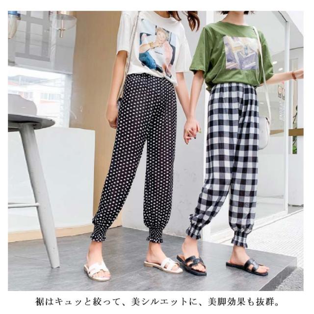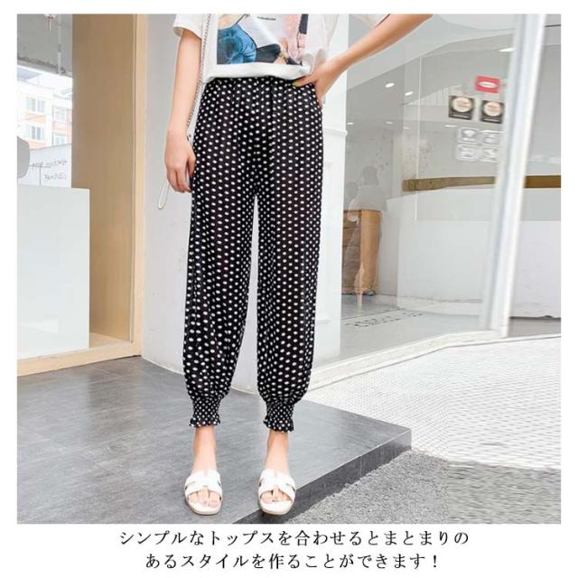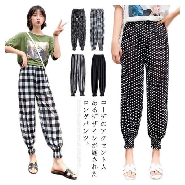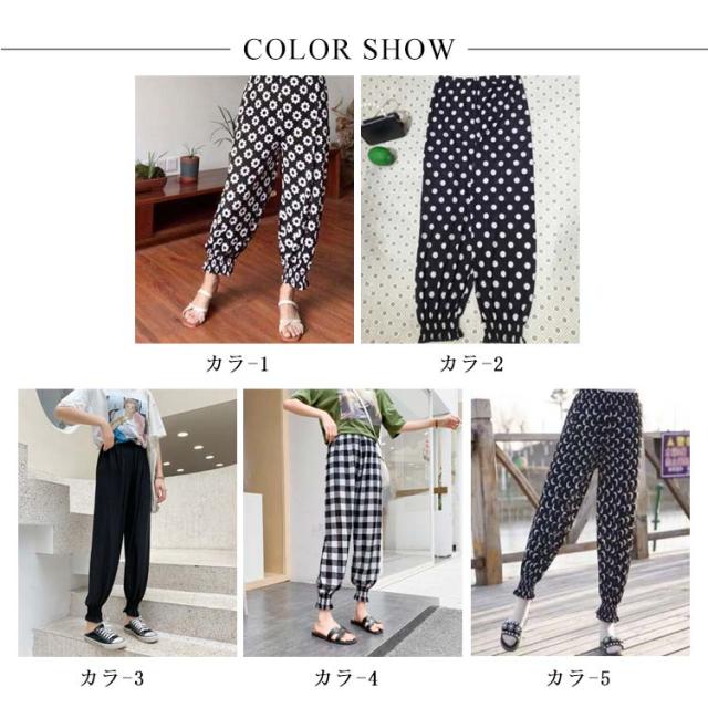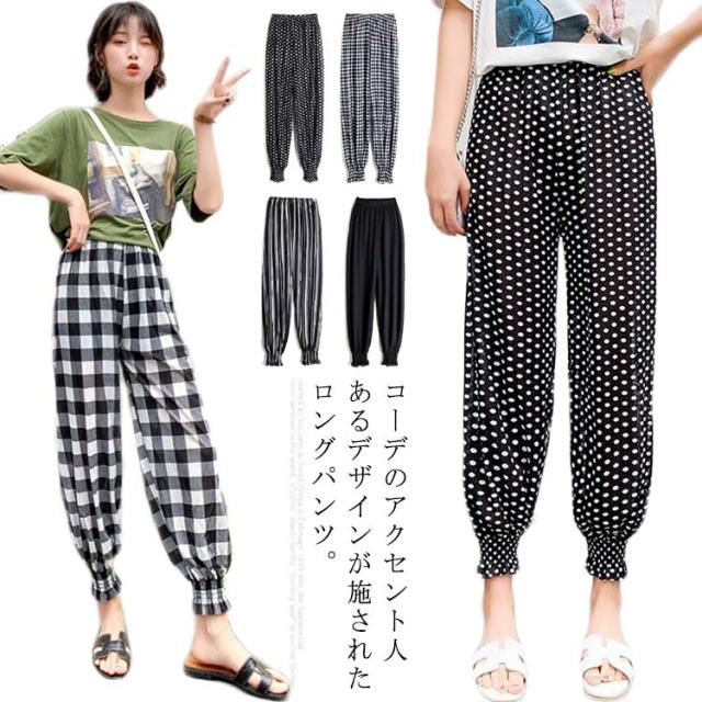 ロングパンツ ギャザー 柄物 ボトムス レディース 部屋着 ルームパンツ カジュアルパンツ ウエストゴム 着痩せ ゆったり ハイウエスト お洒落