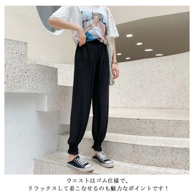 | コーデのアクセント人あるデザインが施されたロングパンツ。 生地も柔らかく素材も軽いのでストレスなくお洒落を叶えられます! 裾はキュッと絞って、美シルエットに、美脚効果も抜群。 ウエストはゴム仕様で、リラックスして着こなせるのも魅力なポイントです! シンプルなトップスを合わせるとまとまりのあるスタイルを作ることができます! | |