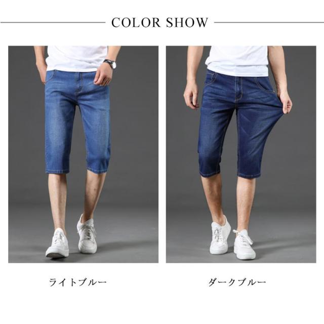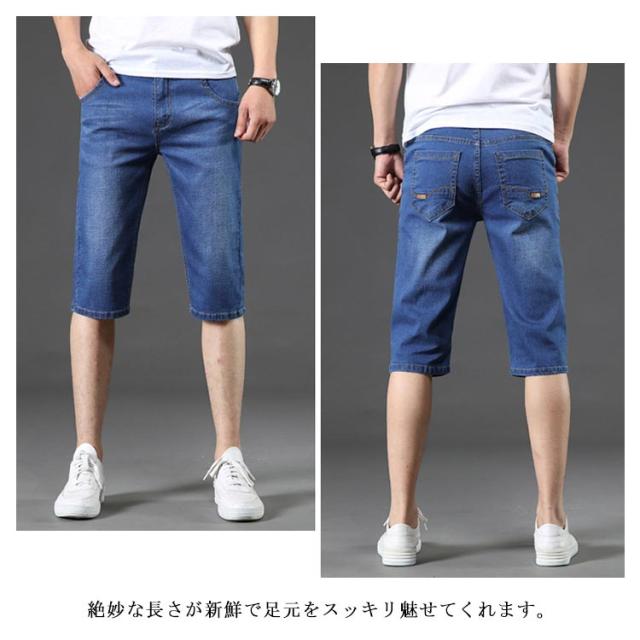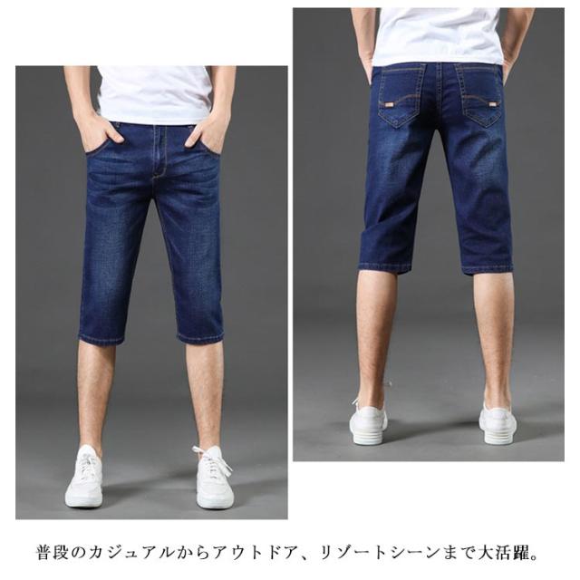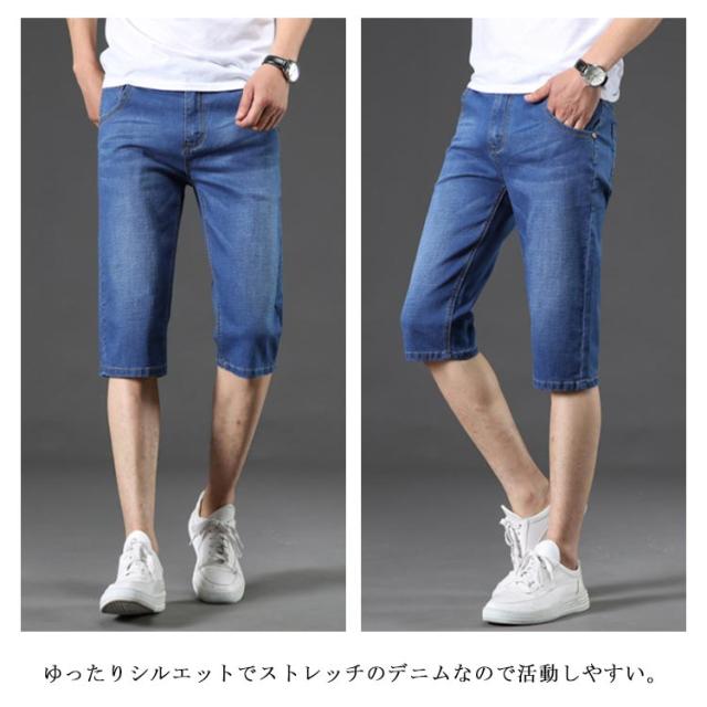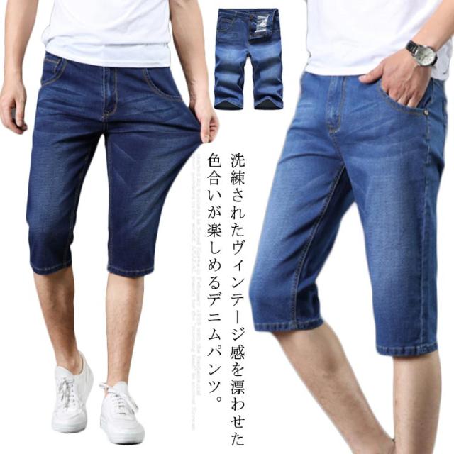 デニムパンツ クロップド メンズ ボトムス 7分丈 ジーパン ストレッチ 短パン 薄手 ジーンズ ストレート ハイウエスト 夏物 カジュアル