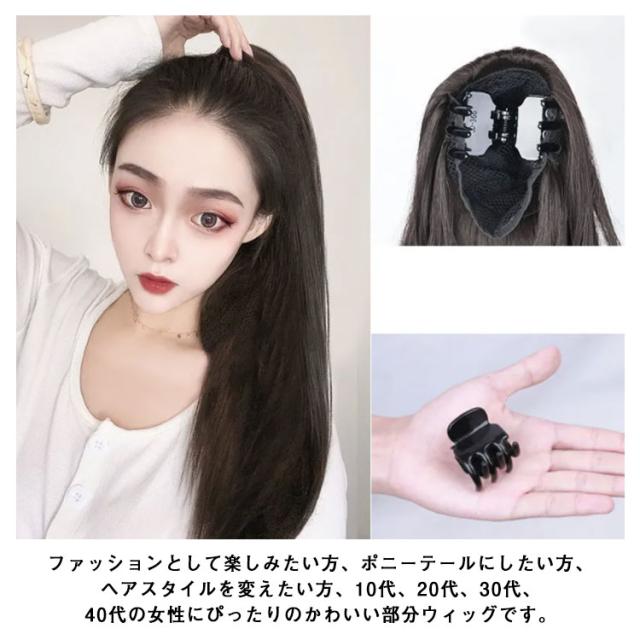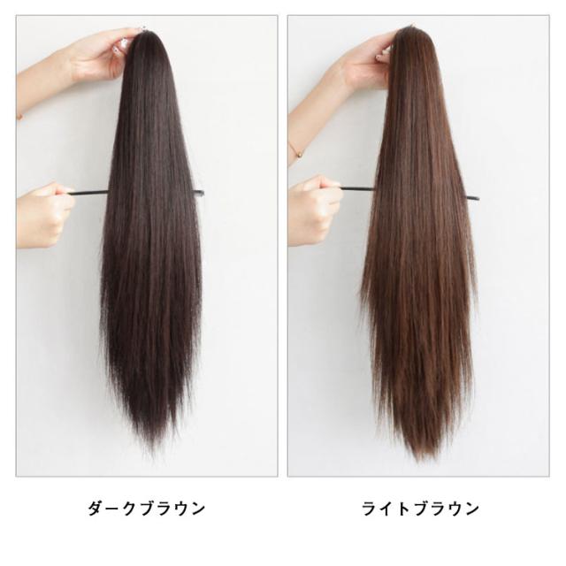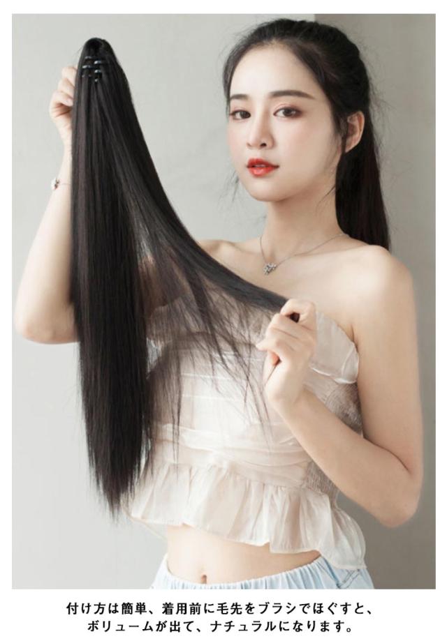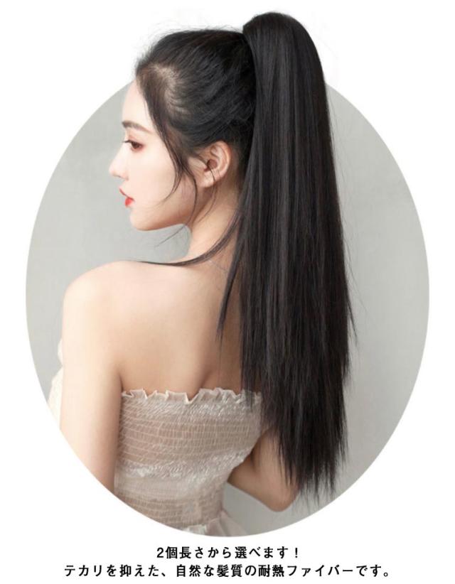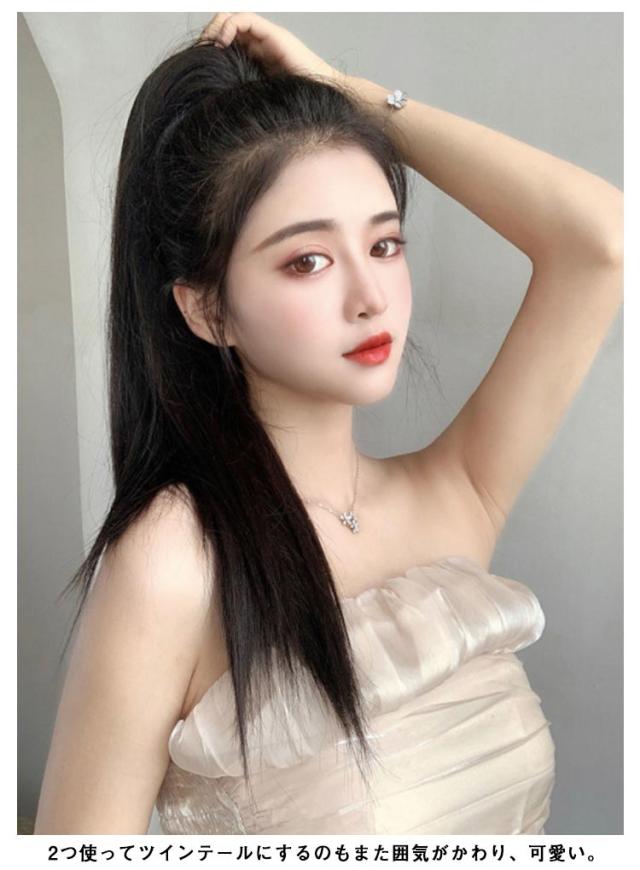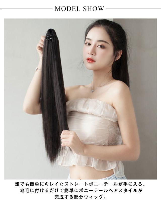 | ストレートウィッグ、和装はもちろん、オフィススタイル、社交ダンス、イベントやパーティなどのドレススタイル、またカジュアルシーンにも使えます! 誰でも簡単にキレイなストレートポニーテールが手に入る、地毛に付けるだけで簡単にポニーテールヘアスタイルが完成する部分ウィッグ。 2つ使ってツインテールにするのもまた囲気がかわり、可愛い。 2個長さから選べます! テカリを抑えた、自然な髪質の耐熱ファイバーです。 付け方は簡単、着用前に毛先をブラシでほぐすと、ボリュームが出て、ナチュラルになります。 髪を一つ結びにしてウィッグに付いている紐で留めるだけ。 ファッションとして楽しみたい方、ポニーテールにしたい方、ヘアスタイルを変えたい方、10代、20代、30代、40代の女性にぴったりのかわいい部分ウィッグです。 | |