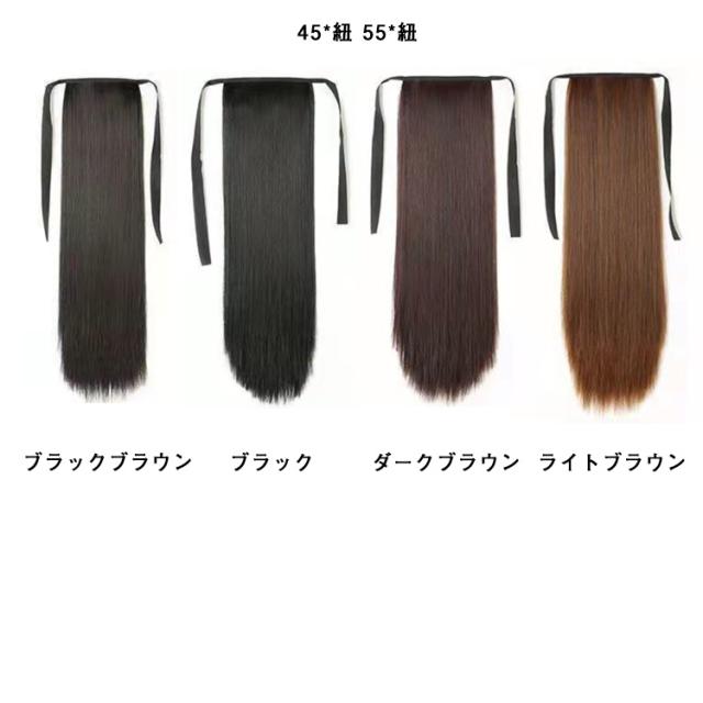 ストレートウィッグ ポニーテール ウィッグ ロング カール 部分ウィッグ エクステ つけ毛 ワンタッチ ひもタイプ かつら ウイッグ ナチュラル 浴衣 コスプレ 結婚式 ダンス 七五三 45cm 55cm
