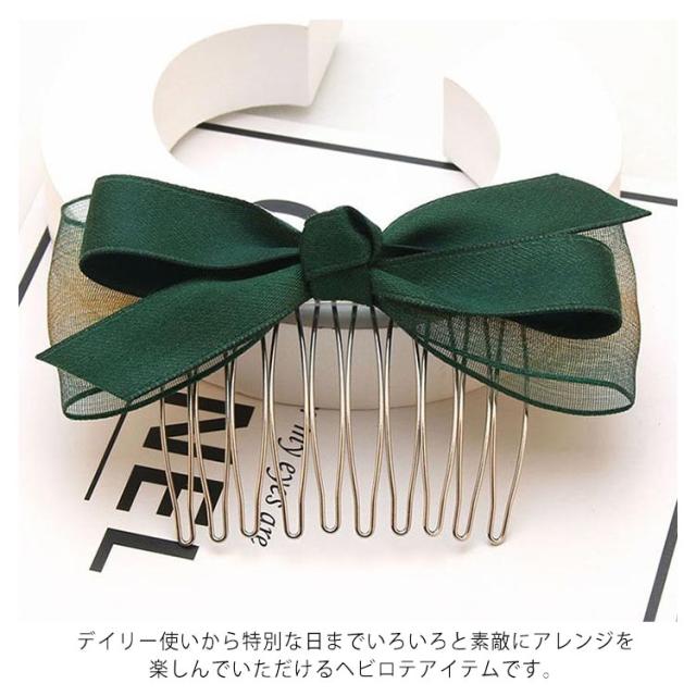 | ドレス、浴衣、和装など和装・洋装どちらにも合う可愛いリボンモチーフ髪飾り。 カジュアルシーンにもフォーマルシーンにも大活躍するから重宝します。 留め具は櫛型なので、ヘアスタイルにあわせて簡単に取り付けるのも嬉しいポイント。 前髪をサイドに止めたり、ポニーテールやおだんごヘアスタイルにプラスしたり、アレンジ自由自在。 デイリー使いから特別な日までいろいろと素敵にアレンジを楽しんでいただけるヘビロテアイテムです。 | |
