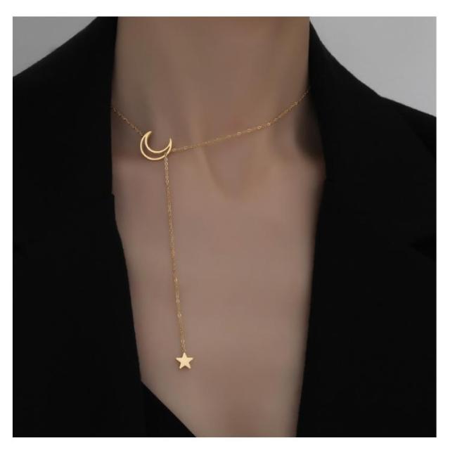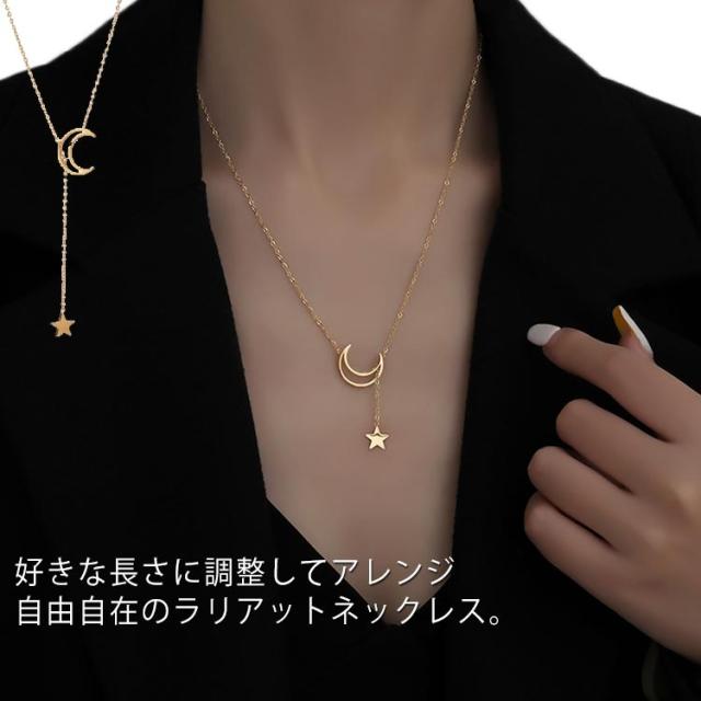全2色 Y字 ネックレス ラリアット 送料無料 レディース 優雅 月星 ロング ネックレス おしゃれ アクセサリー つけっぱなし ジュエリー ニッケルフリー 金属アレルギー 記念日 誕生日 ギフト プレゼント