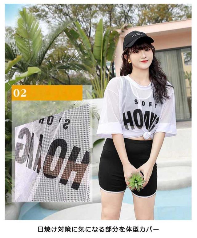 送料無料 3点セット レディース 水着 水着セット フィットネス水着 ワンピース スポーティー 体型カバー セパレート タンキニ タンク UVカート ショートパンツ 夏