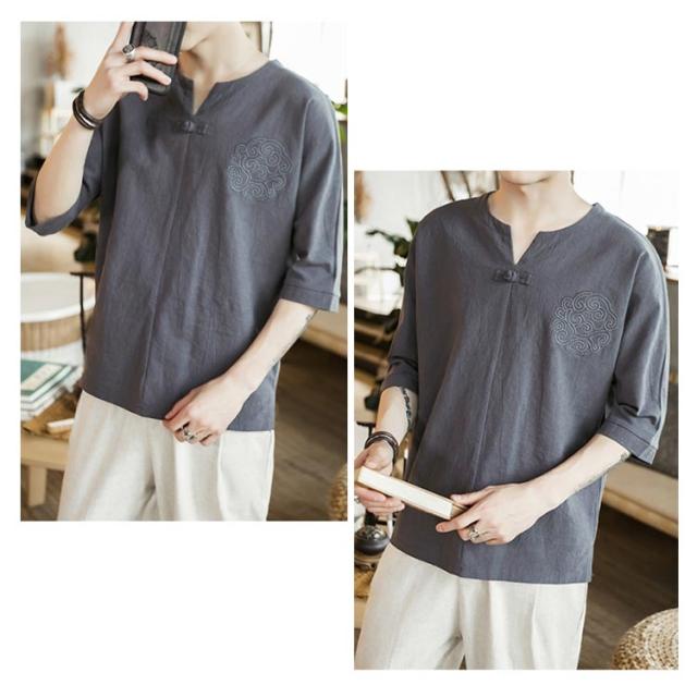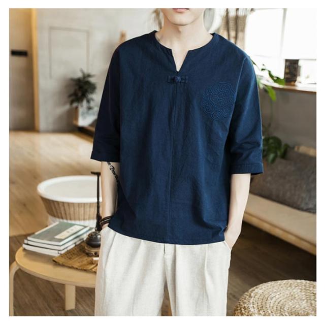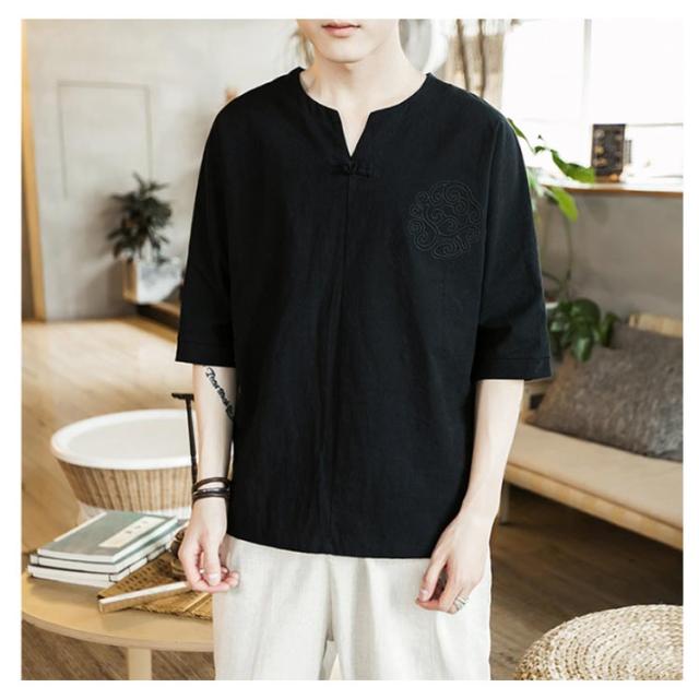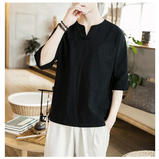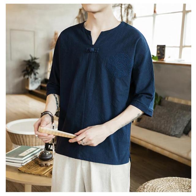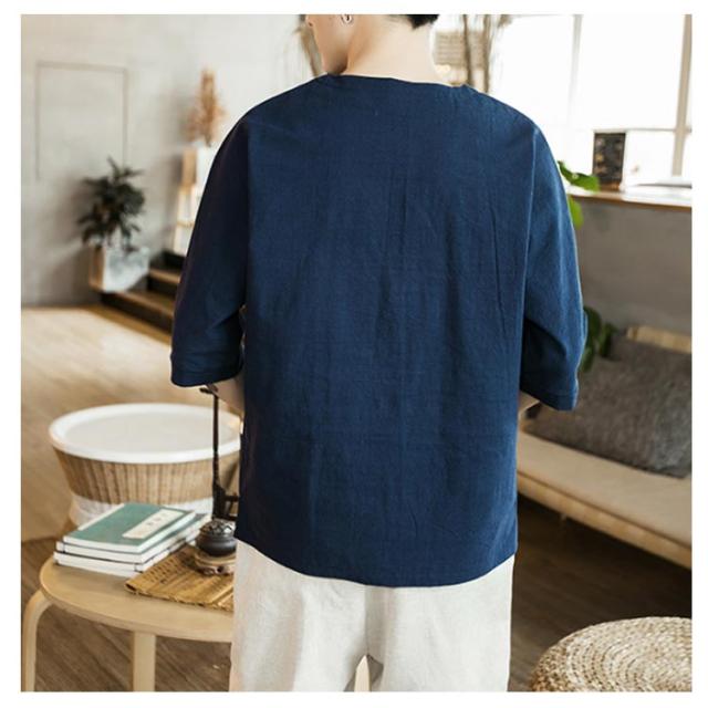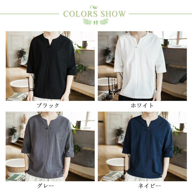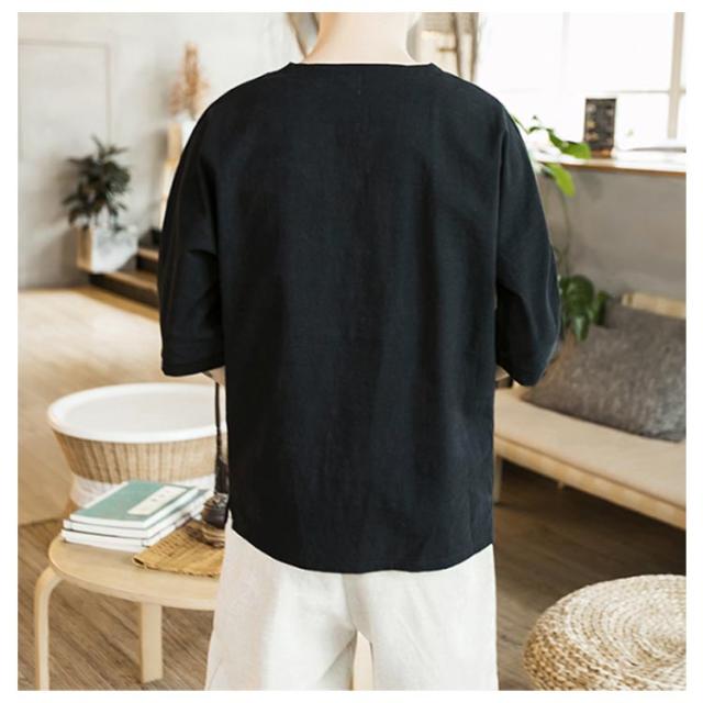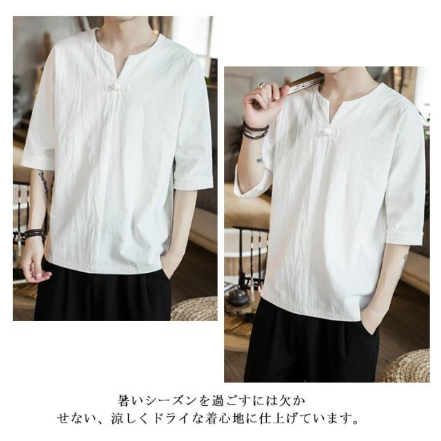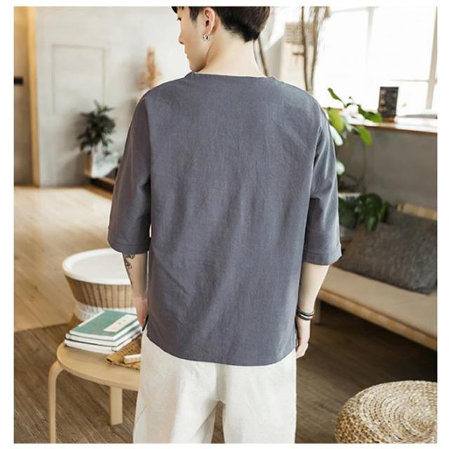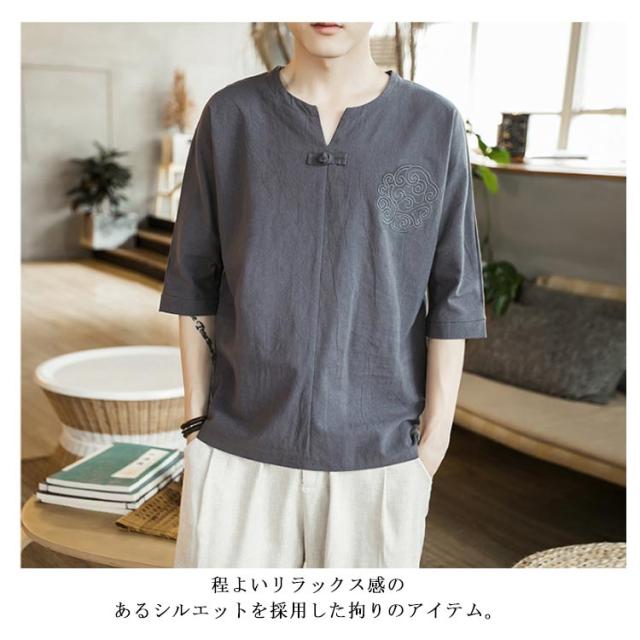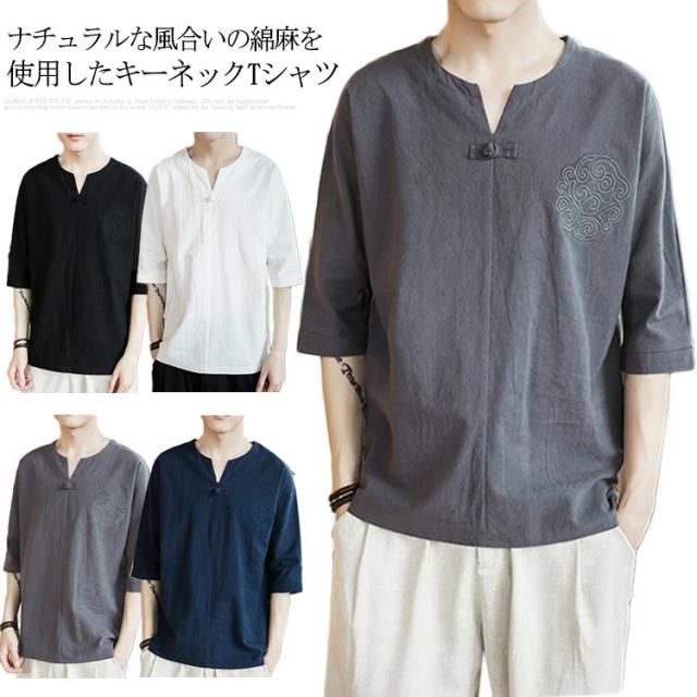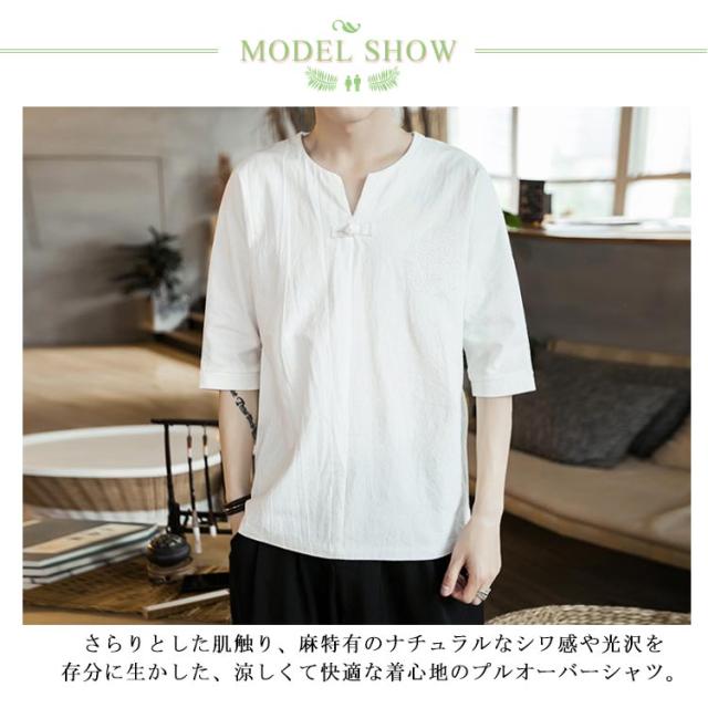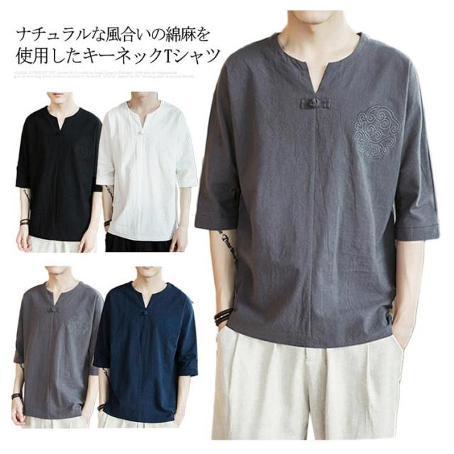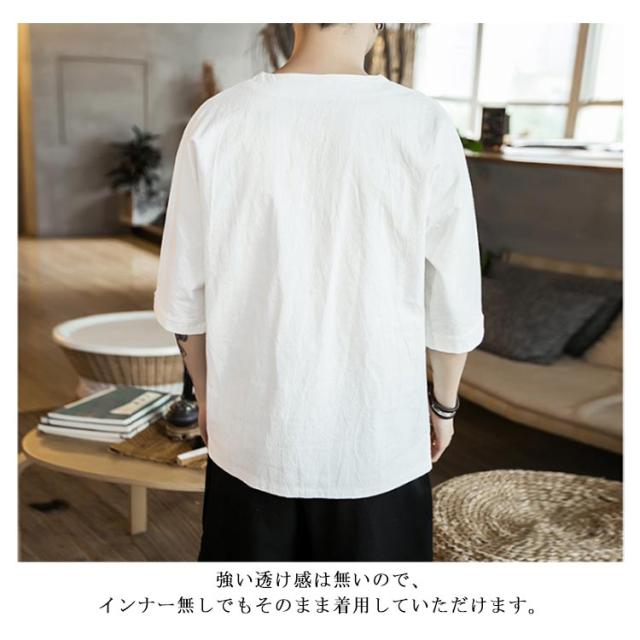 【送料無料】tシャツ 五分袖 カットソー 無地 透けない ゆったり 刺? 丸首 メンズ リネン調 薄手 ナチュラル 薄手 吸湿 Vネック 大きいサイズ ルームウェア 部屋着 ビッグシルエット 速乾 超 LL 2L 3L 綿麻混