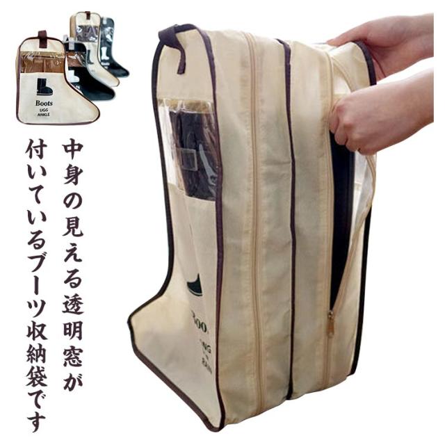 ブーツ収納ケース 長靴 窓付き 除湿剤ポケット付 防水 ファスナー 持ち運び便利 旅行 トラベル 出勤 シューズカバー 不織布 日用雑貨 全2色